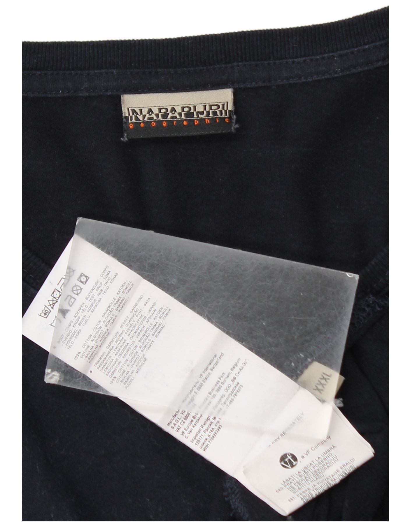 NAPAPIJRI Mens Geographic Graphic T-Shirt Long Sleeve 3XL Navy Blue Cotton