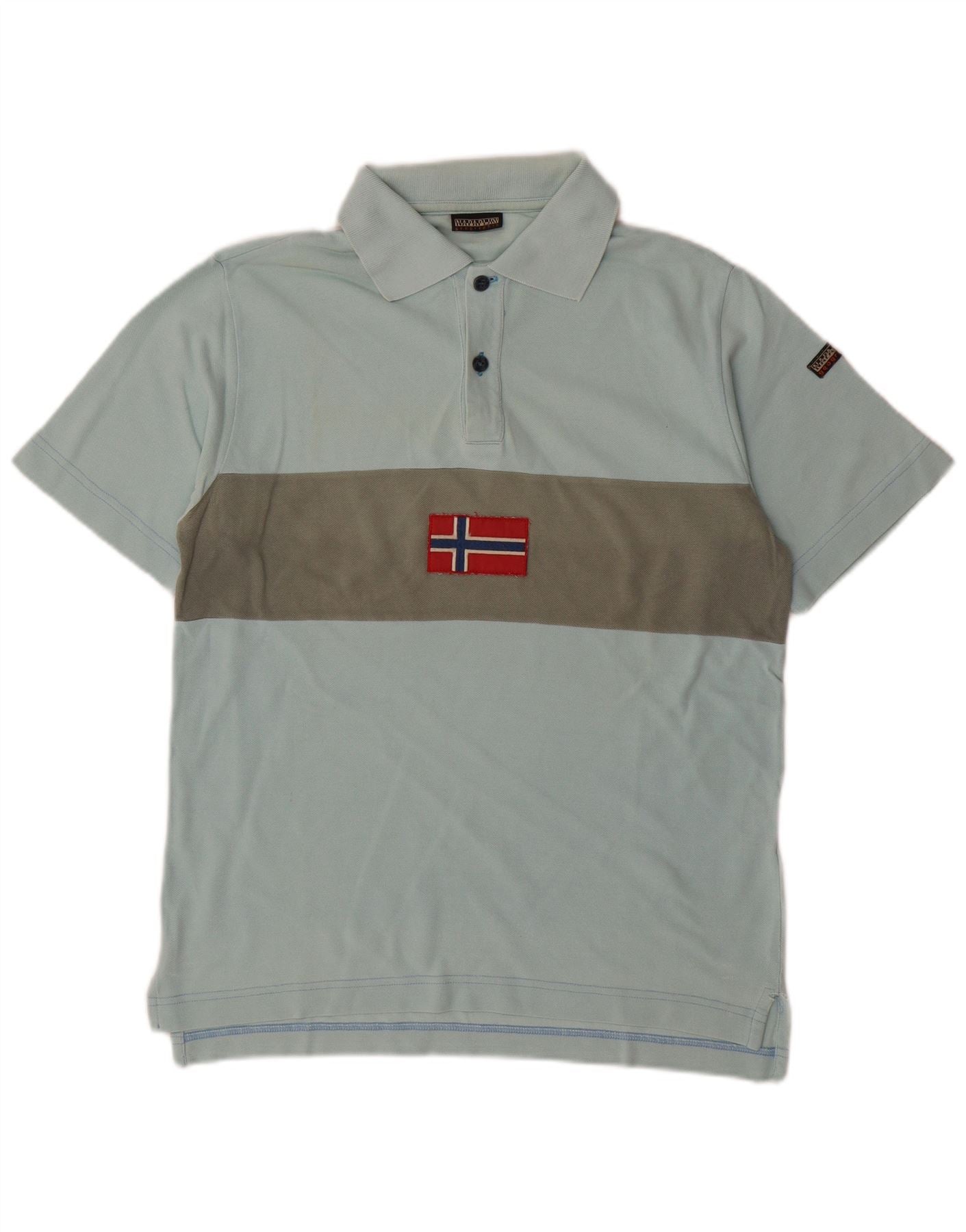 NAPAPIJRI Mens Geographic Polo Shirt Small Blue Colourblock Cotton