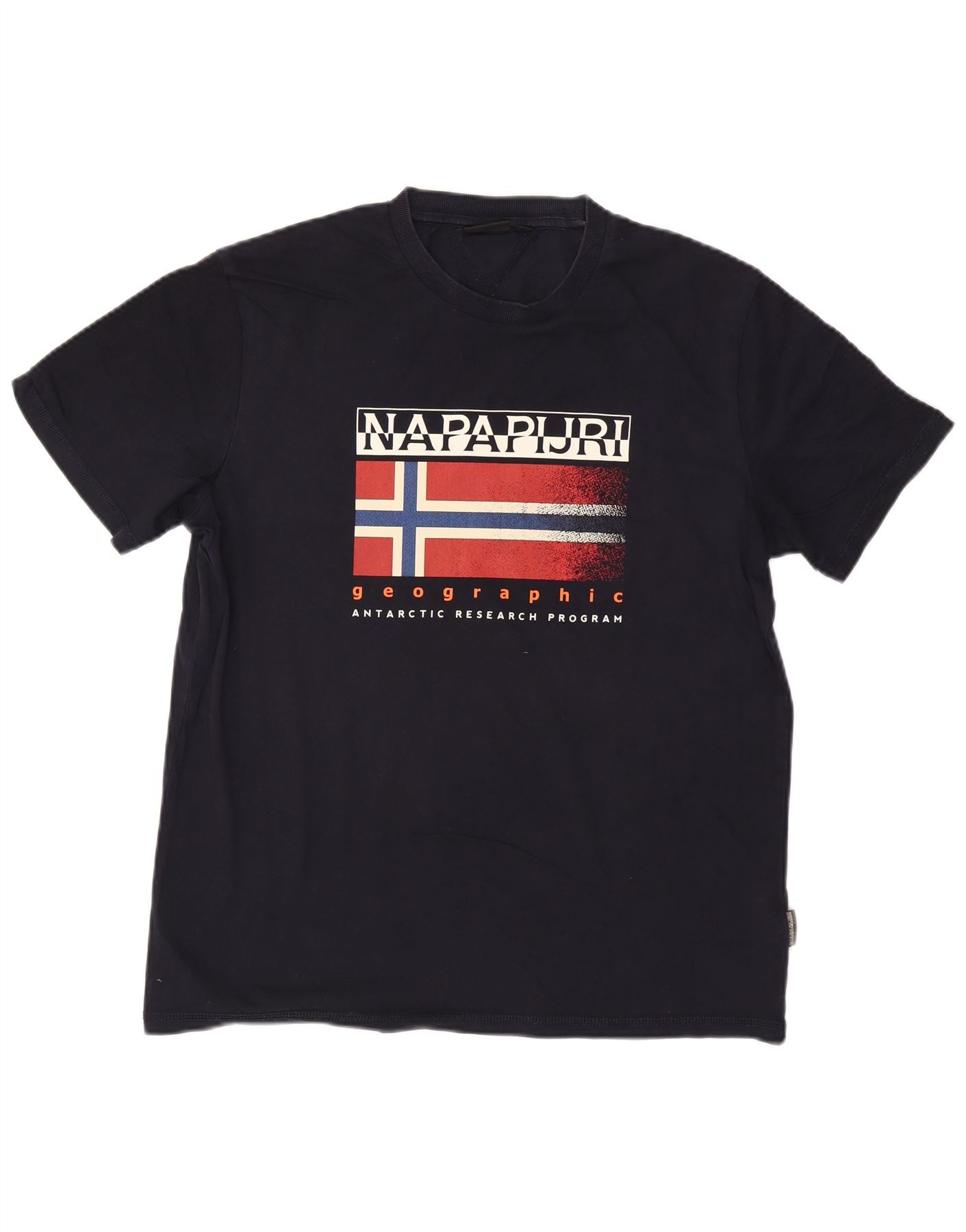 NAPAPIJRI Mens Graphic T-Shirt Top XL Navy Blue Cotton
