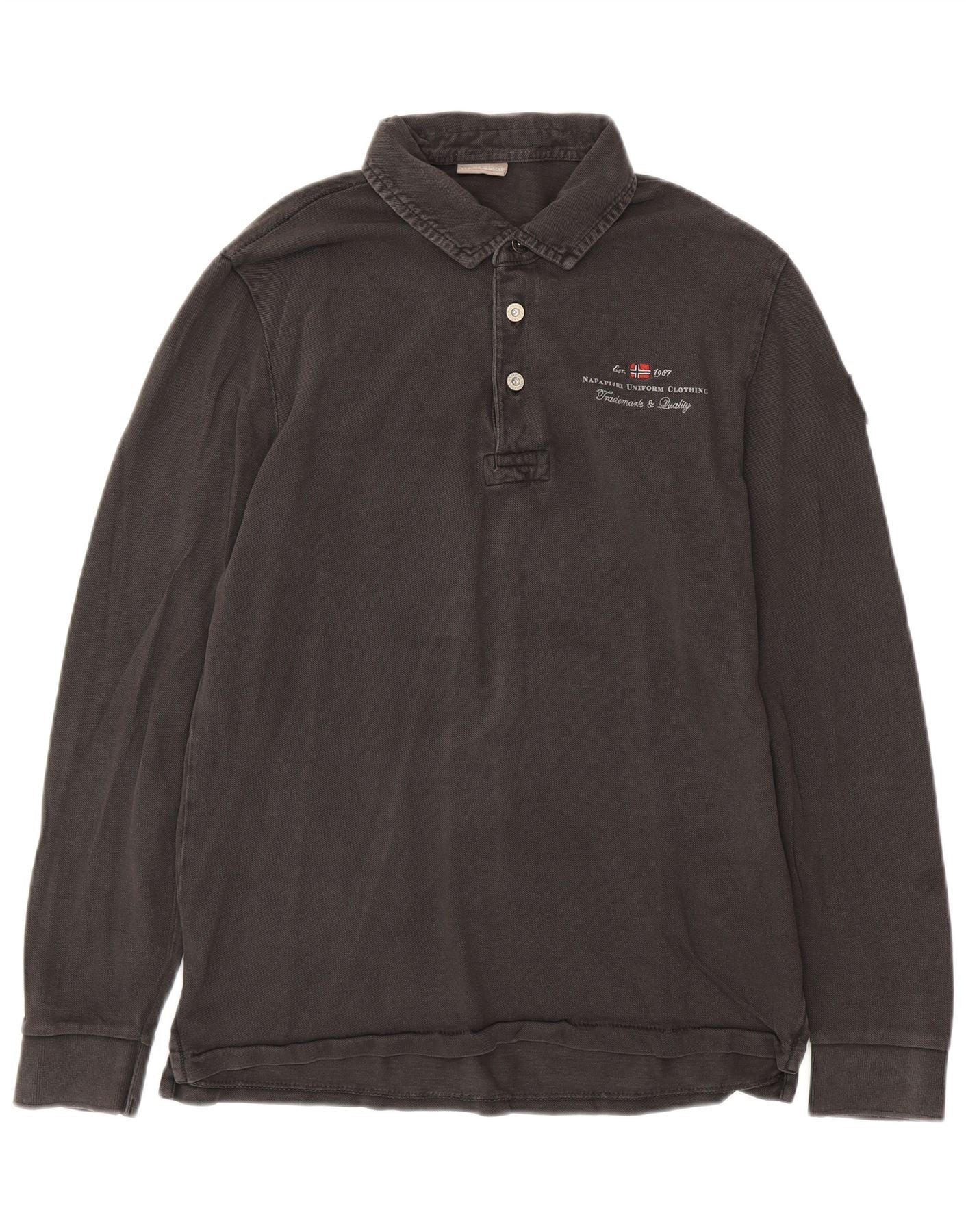 NAPAPIJRI Mens Long Sleeve Polo Shirt Medium Grey Cotton