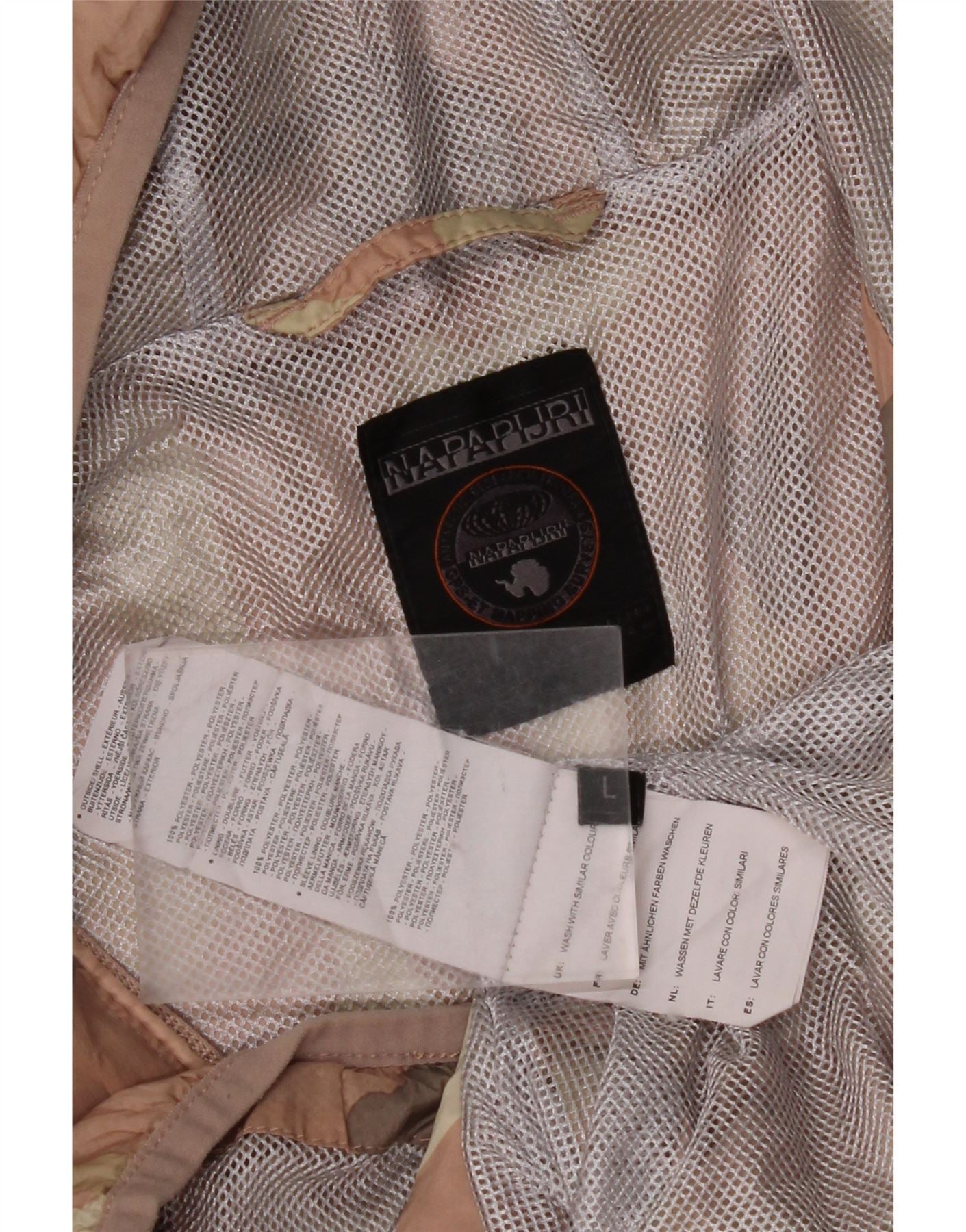 NAPAPIJRI Womens Hooded Rain Jacket UK 16 Large Pink Camouflage Polyester
