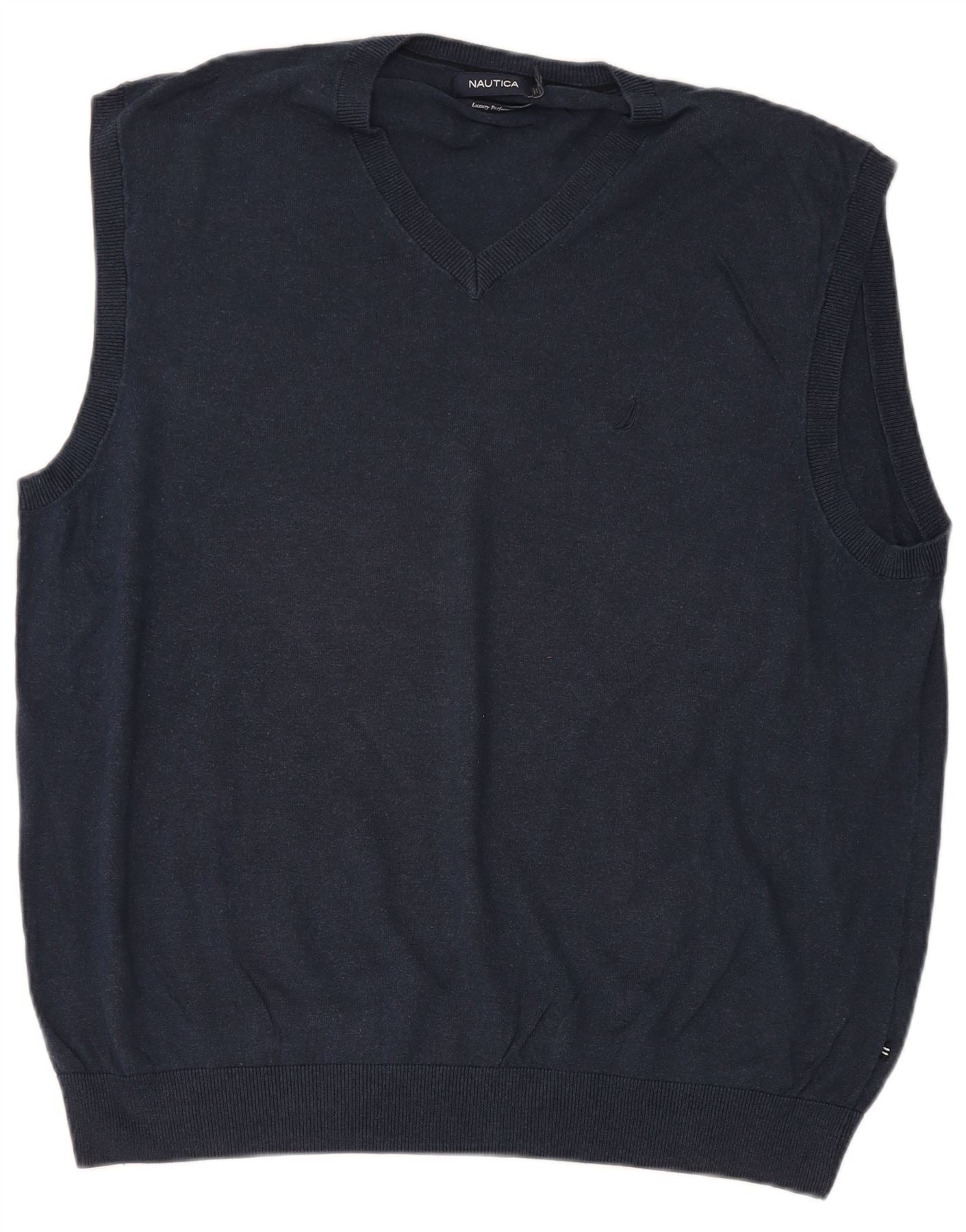 NAUTICA Mens Big & Tall Vest Tank Top 2XL Navy Blue Cotton