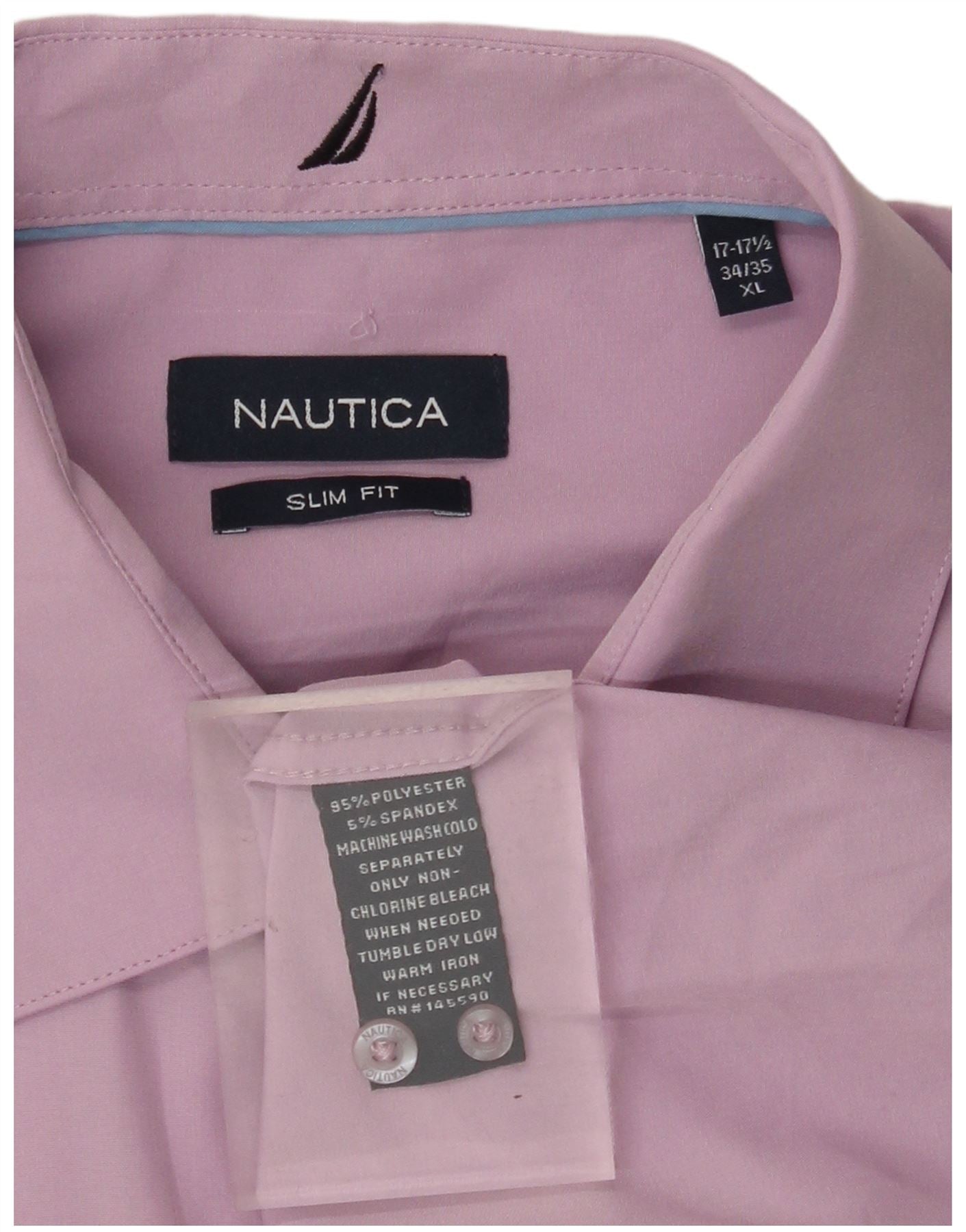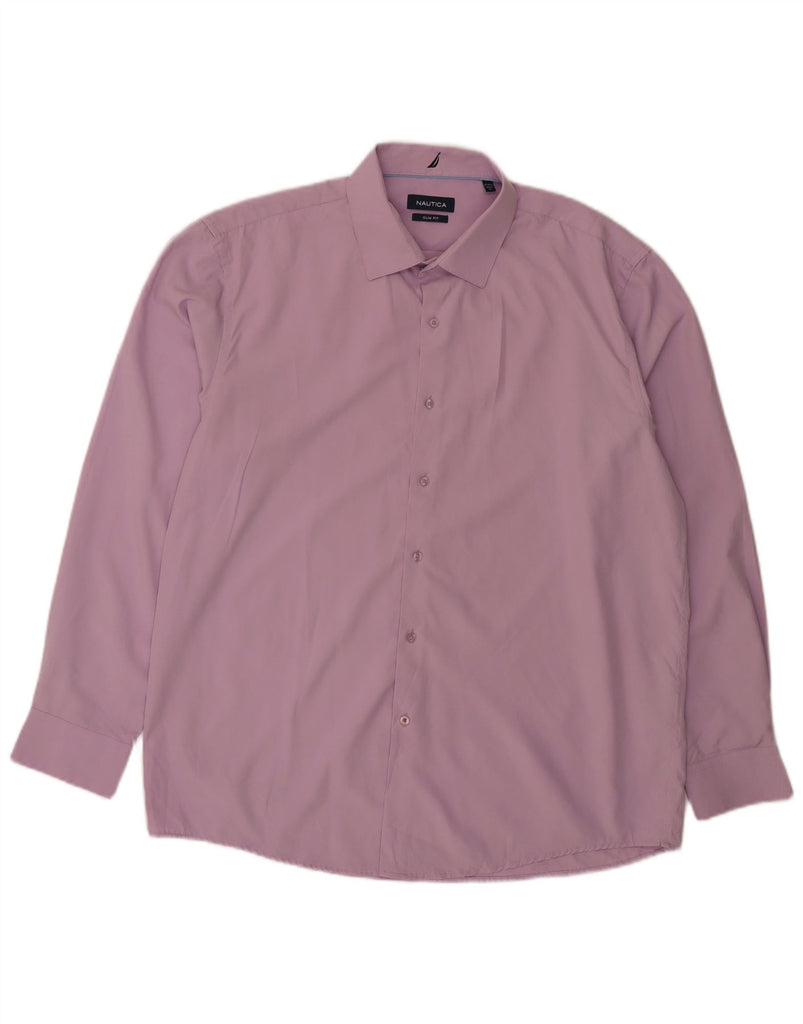 NAUTICA Mens Slim Fit Shirt Size 17 1/2 XL Purple Polyester
