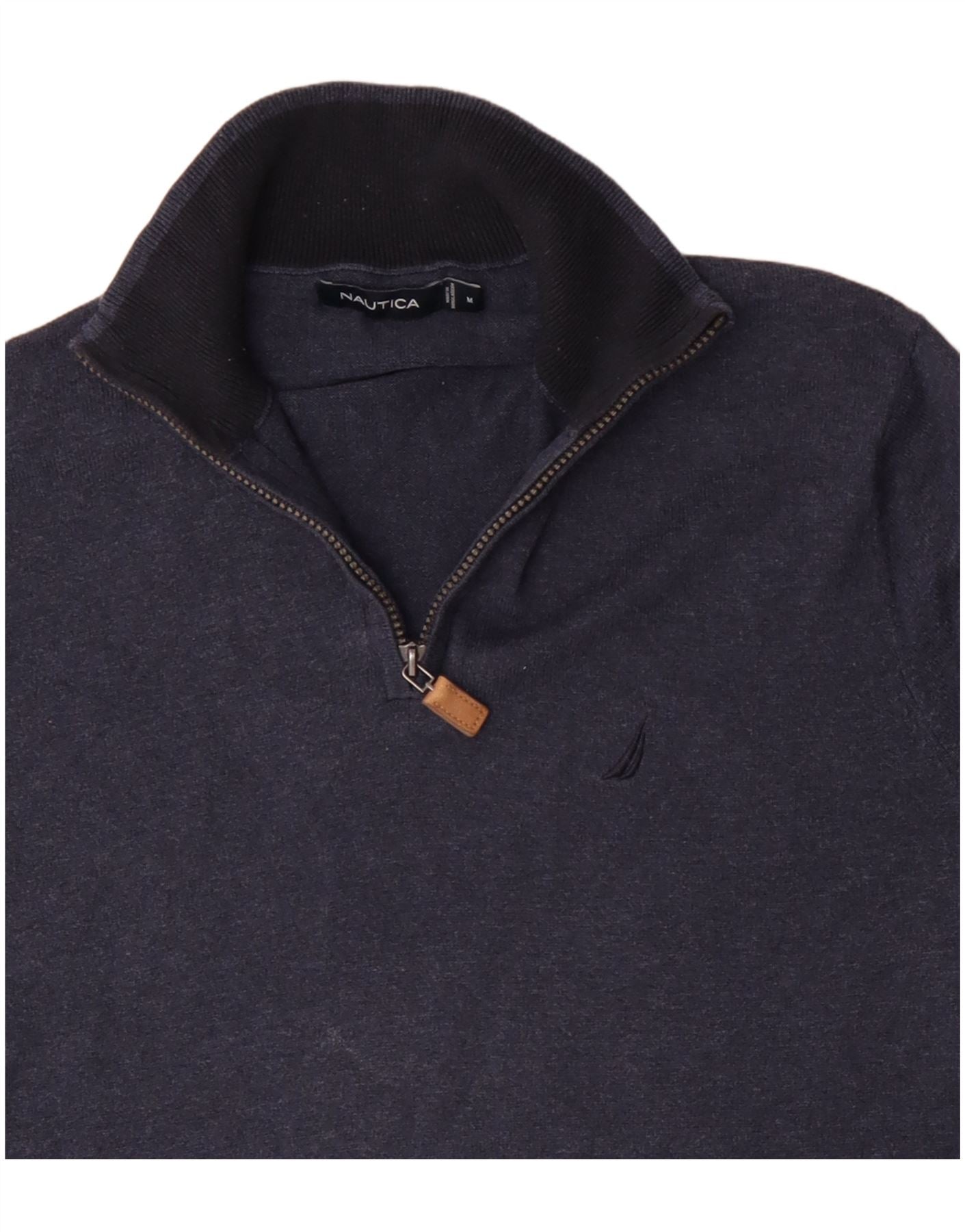 NAUTICA Mens Zip Neck Jumper Sweater Medium Navy Blue Cotton