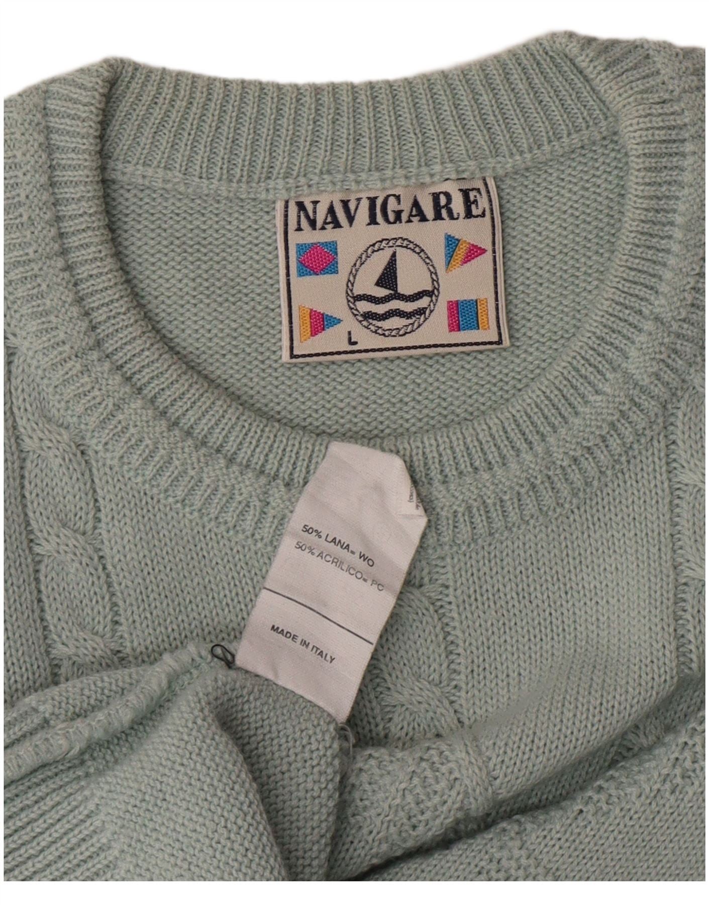 NAVIGARE Mens Crew Neck Jumper Sweater Large Green Argyle/Diamond Classic