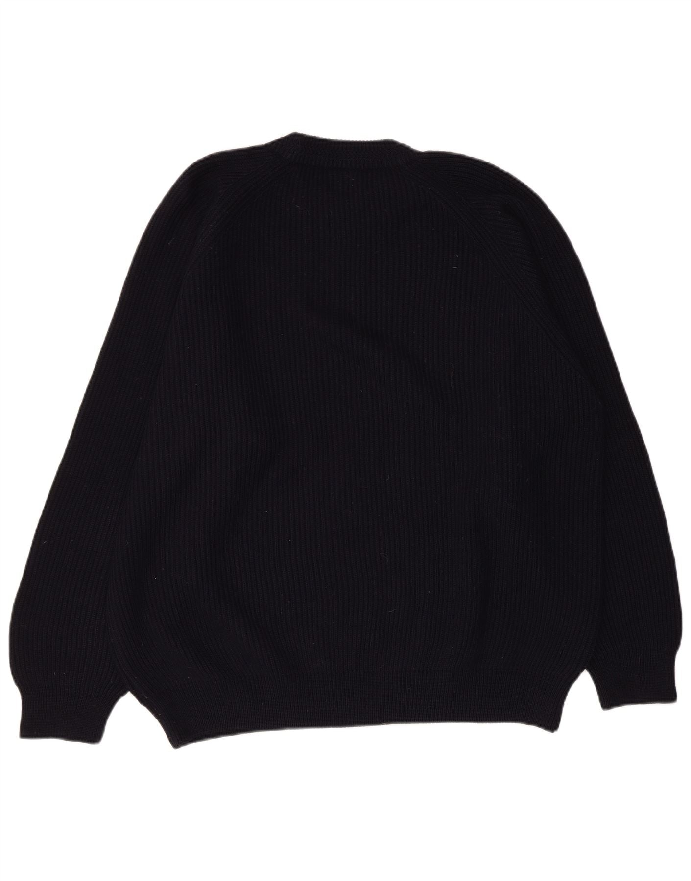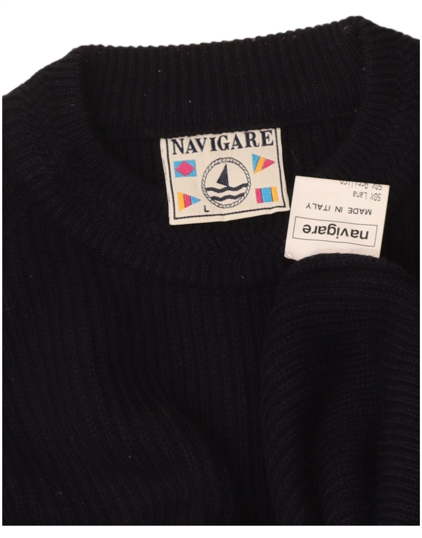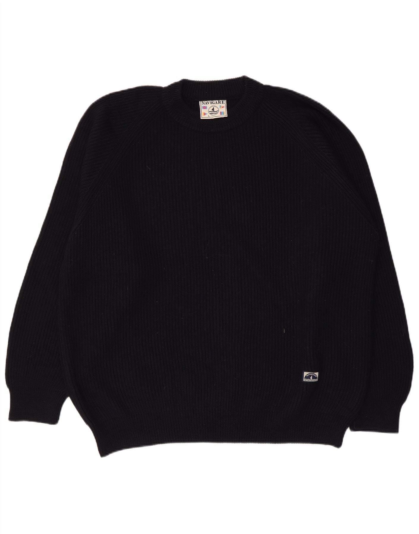 NAVIGARE Mens Crew Neck Jumper Sweater Large Navy Blue Wool