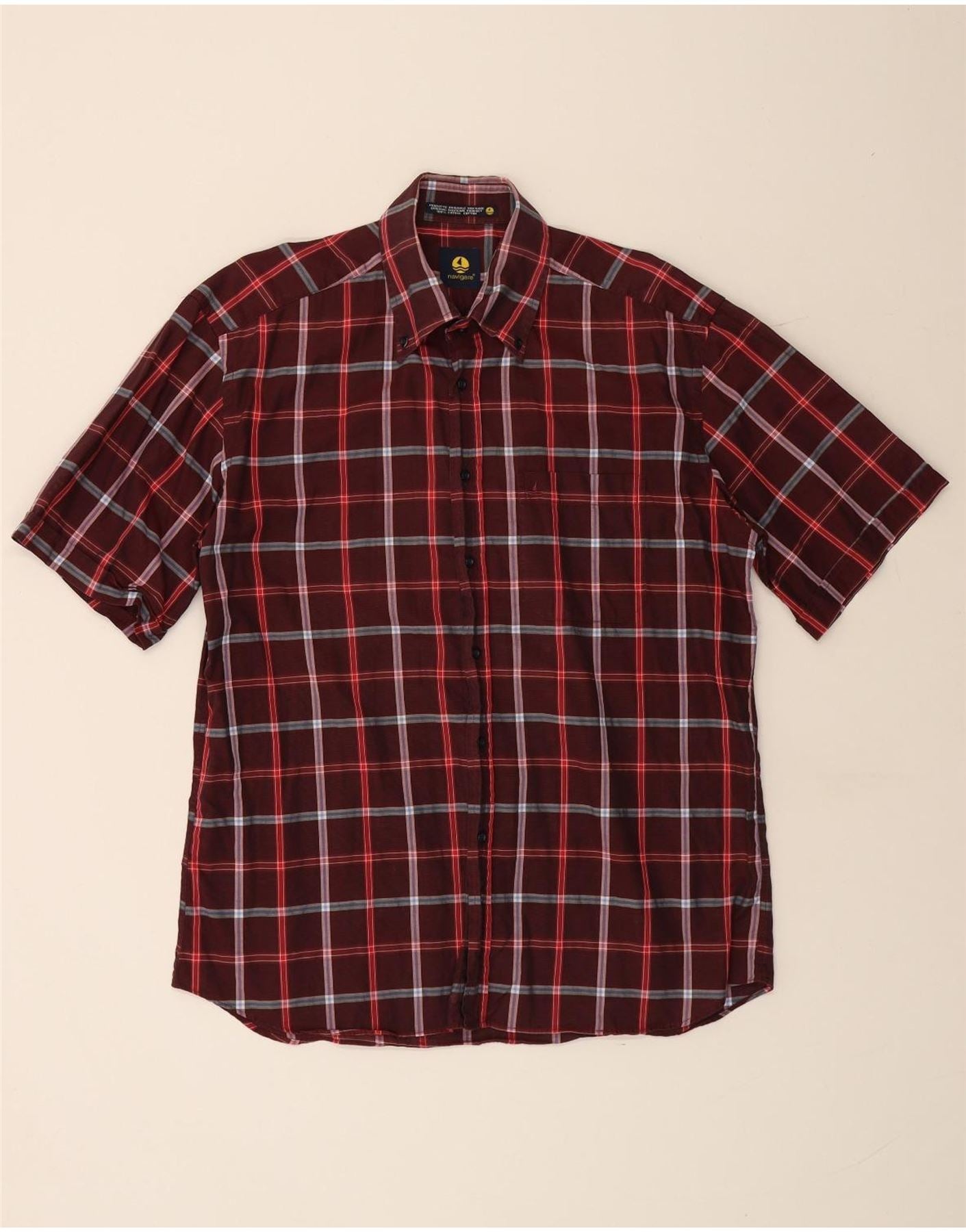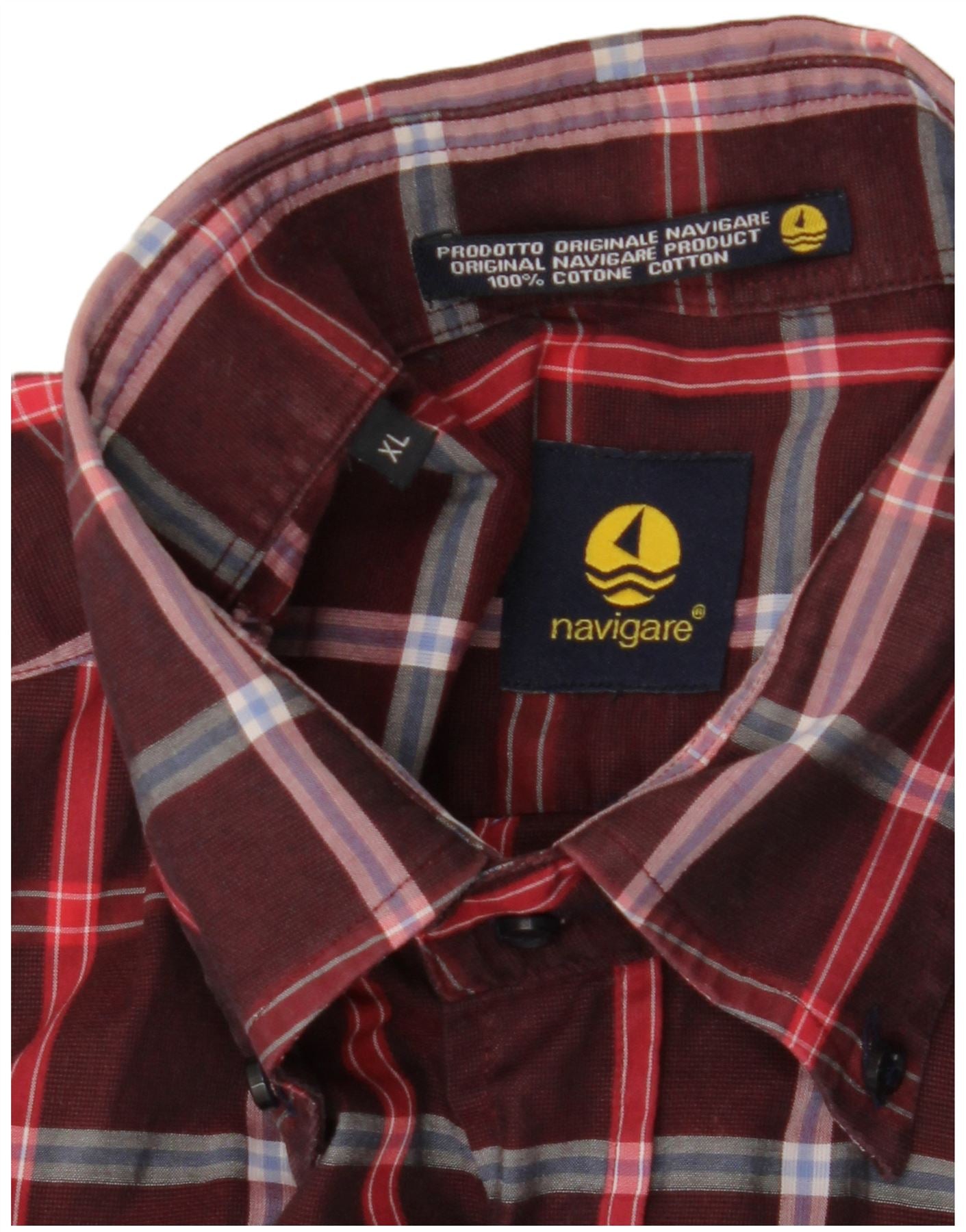 NAVIGARE Mens Short Sleeve Shirt XL Burgundy Check Cotton