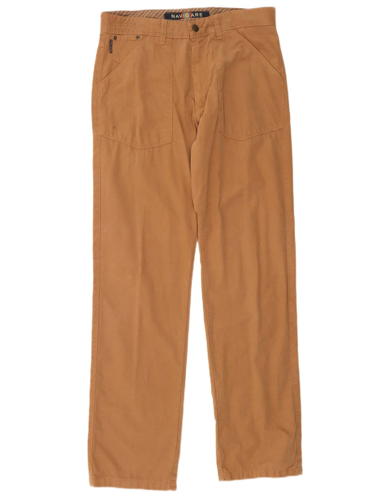 NAVIGARE Mens Straight Chino Trousers IT 50 Large W34 L34 Brown Cotton