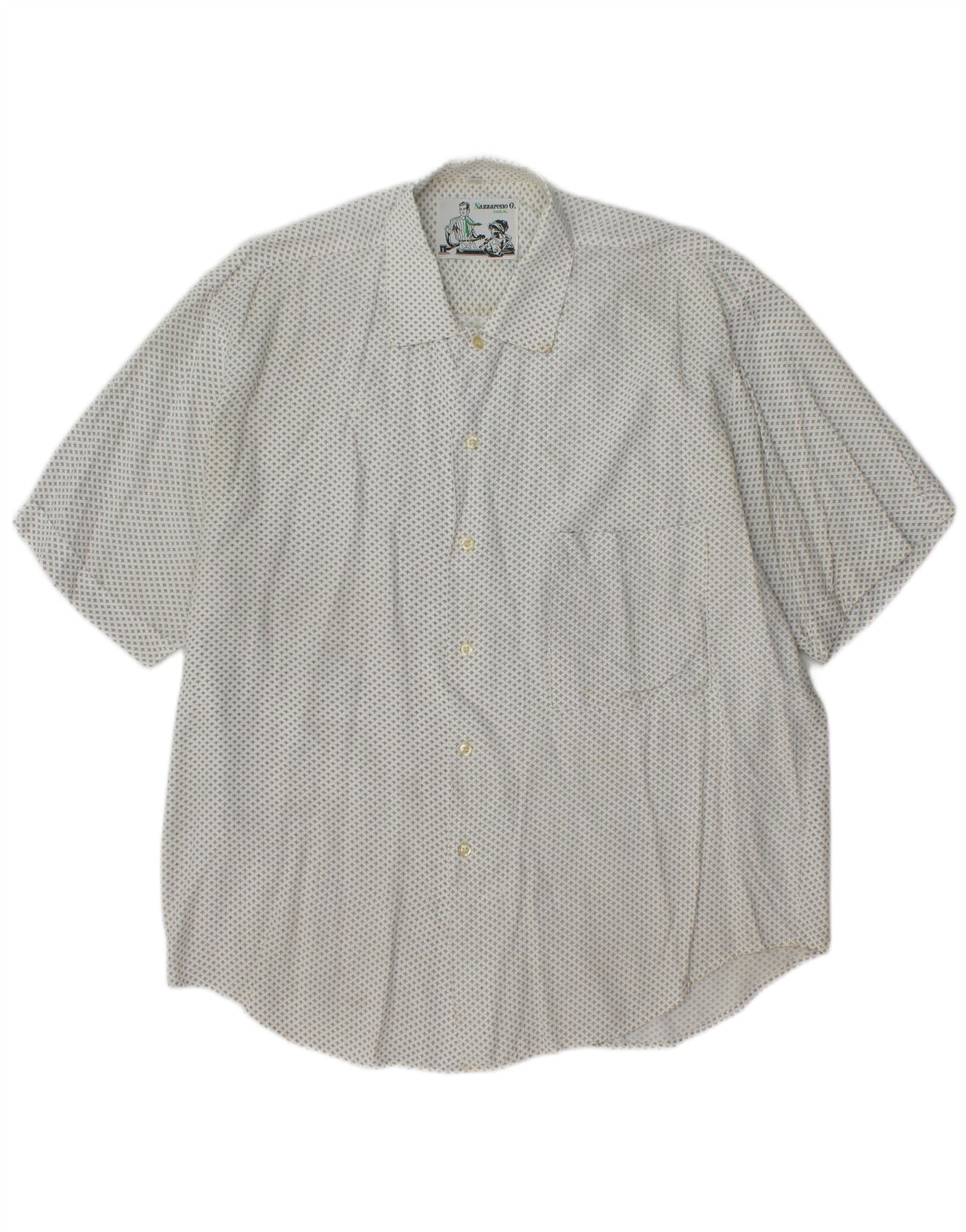 NAZZARENO G. Mens Short Sleeve Shirt Medium White Spotted Viscose