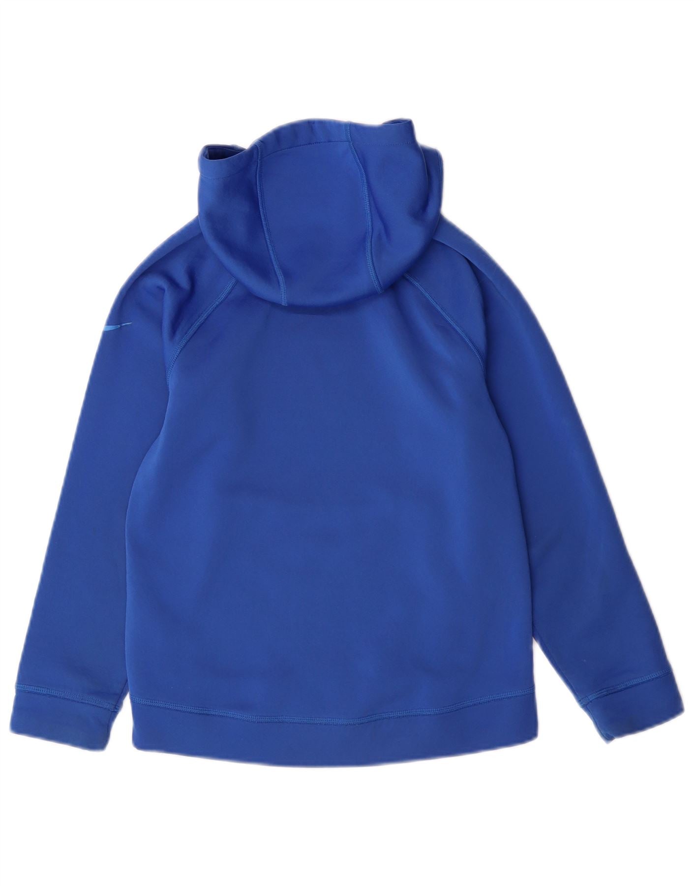 NIKE Boys Dri Fit Graphic Hoodie Jumper 8-9 Years Small Blue Polyester
