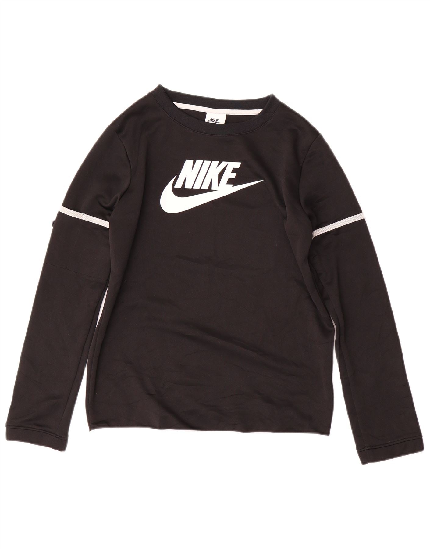 NIKE Boys Graphic Pullover Tracksuit Top 12-13 Years Large Black Spotted