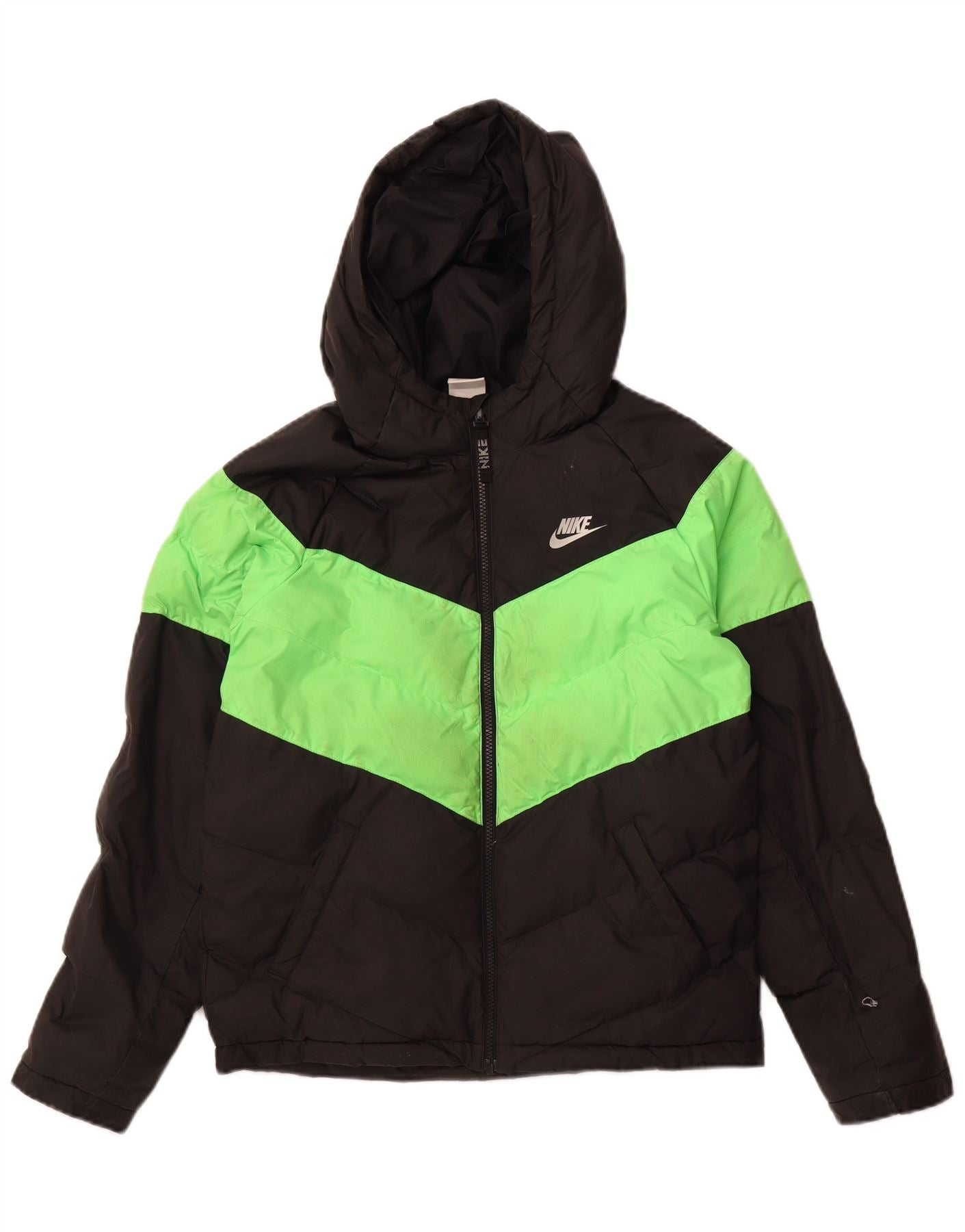 NIKE Boys Hooded Rain Jacket 13-14 Years XL Black Polyester