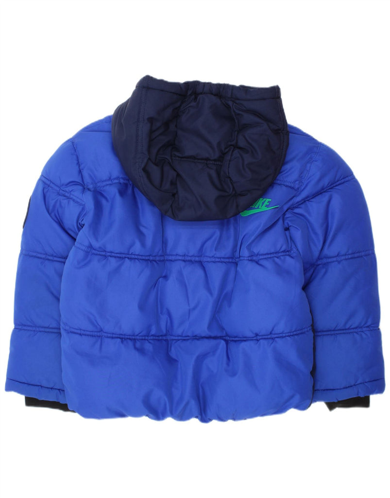 NIKE Boys Hooded Padded Jacket 4-5 Years Small Blue Colourblock Polyester