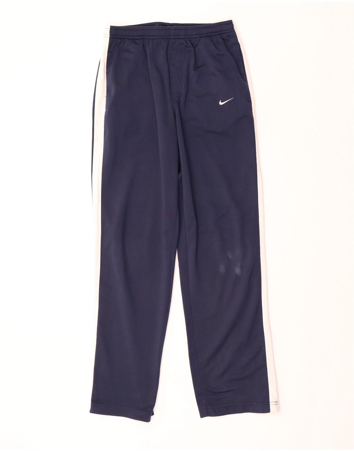 NIKE Boys Tracksuit Trousers 12-13 Years Large Navy Blue Colourblock