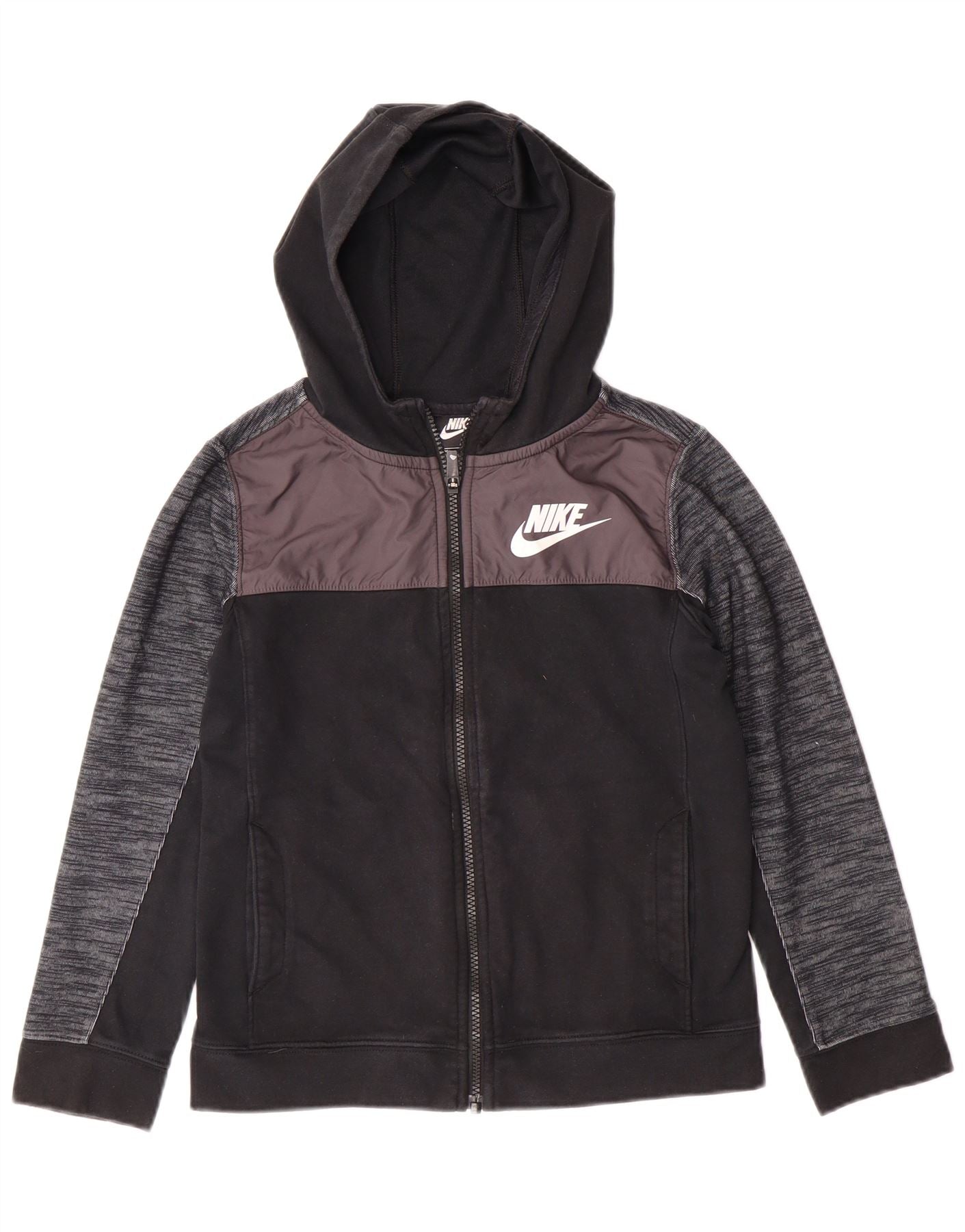 NIKE Boys Zip Hoodie Sweater 10-11 Years Medium Black Colourblock Cotton