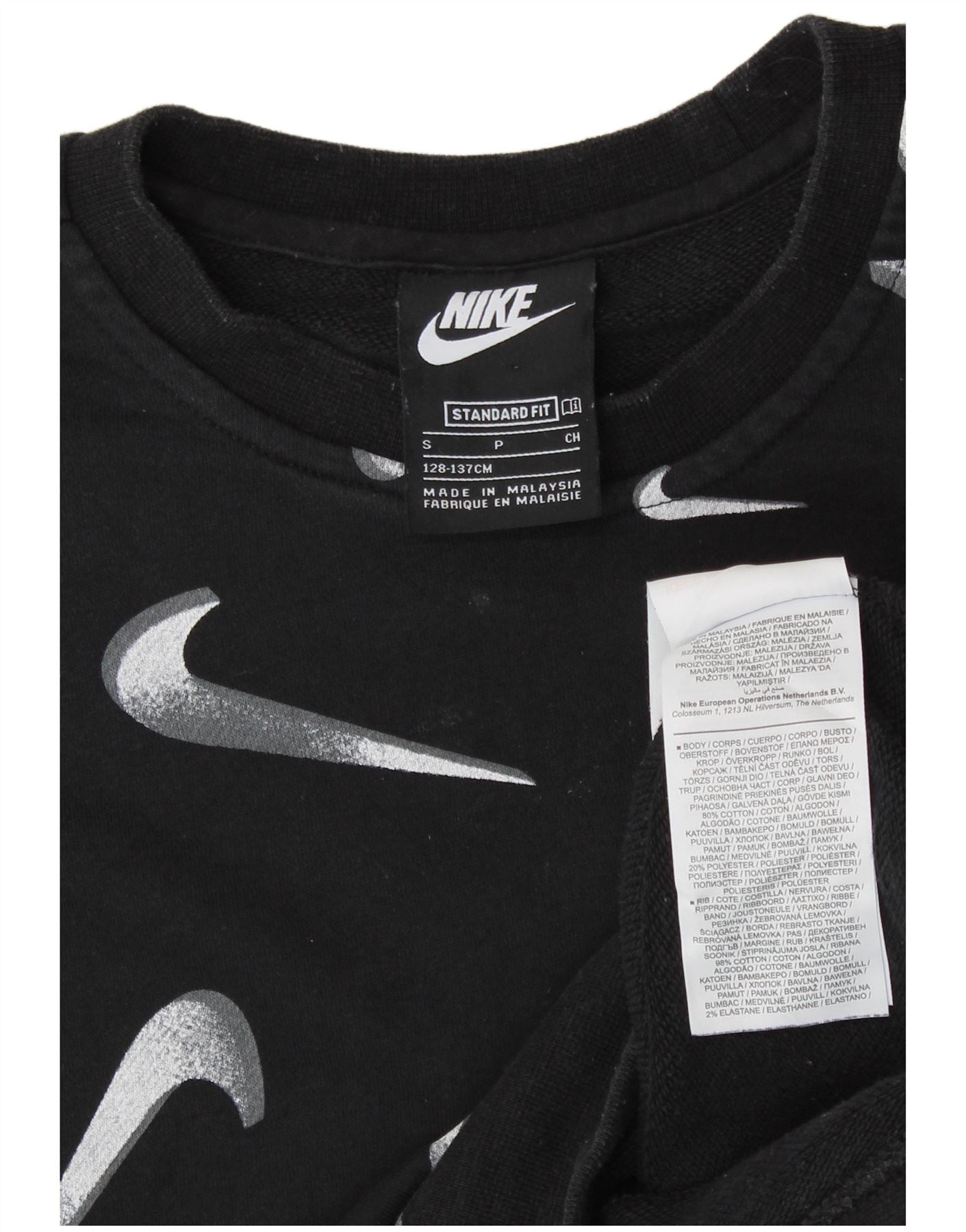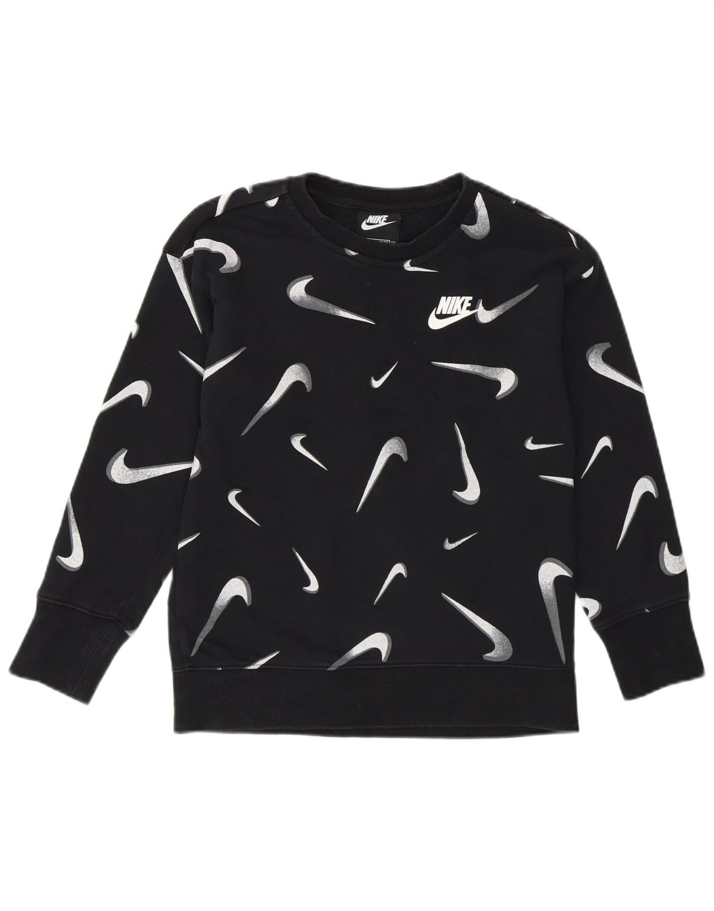 NIKE Girls Graphic Standard Fit Sweatshirt Jumper 8-9 Years Small Black