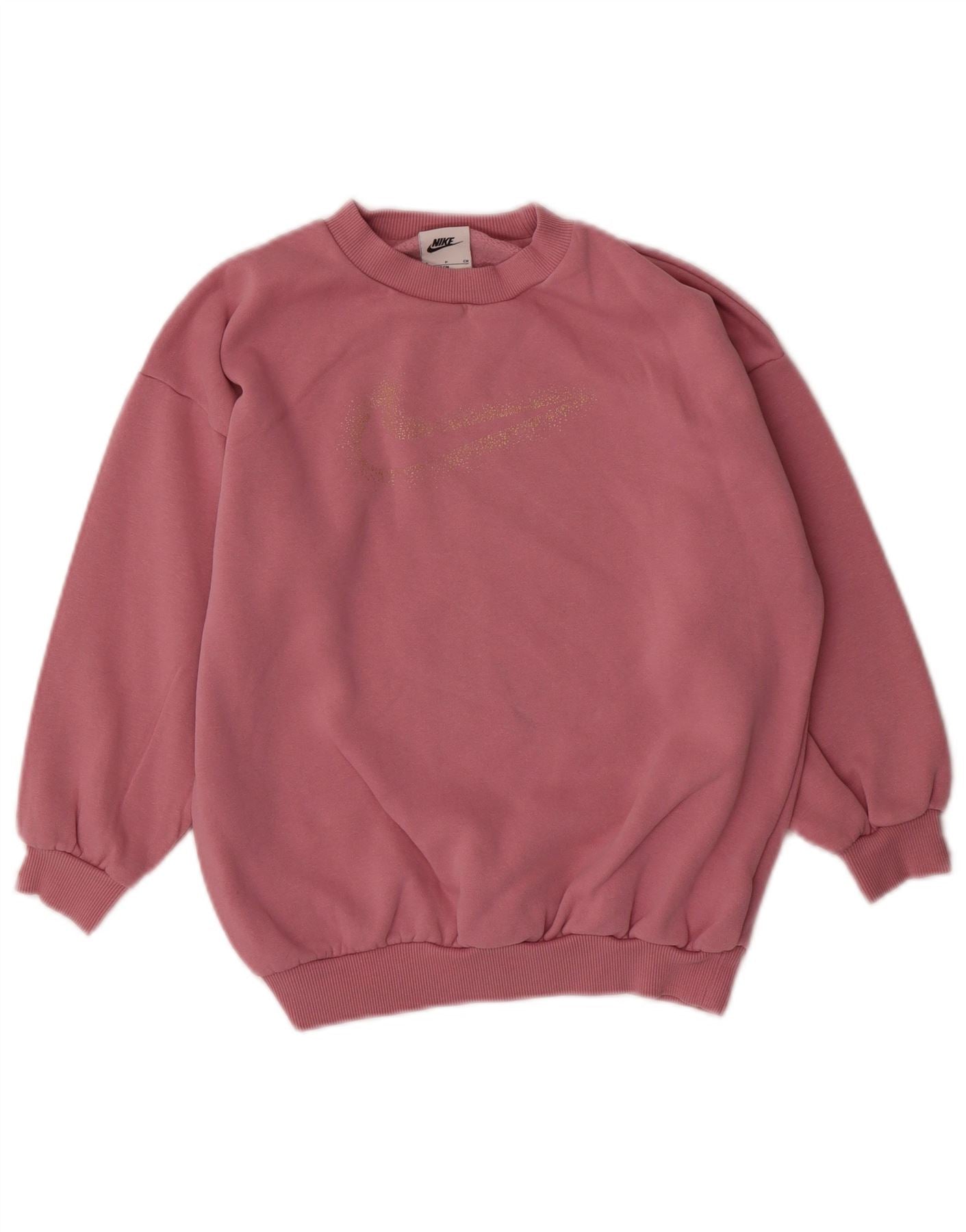 NIKE Girls Graphic Sweatshirt Jumper 8-9 Years Small Pink Cotton
