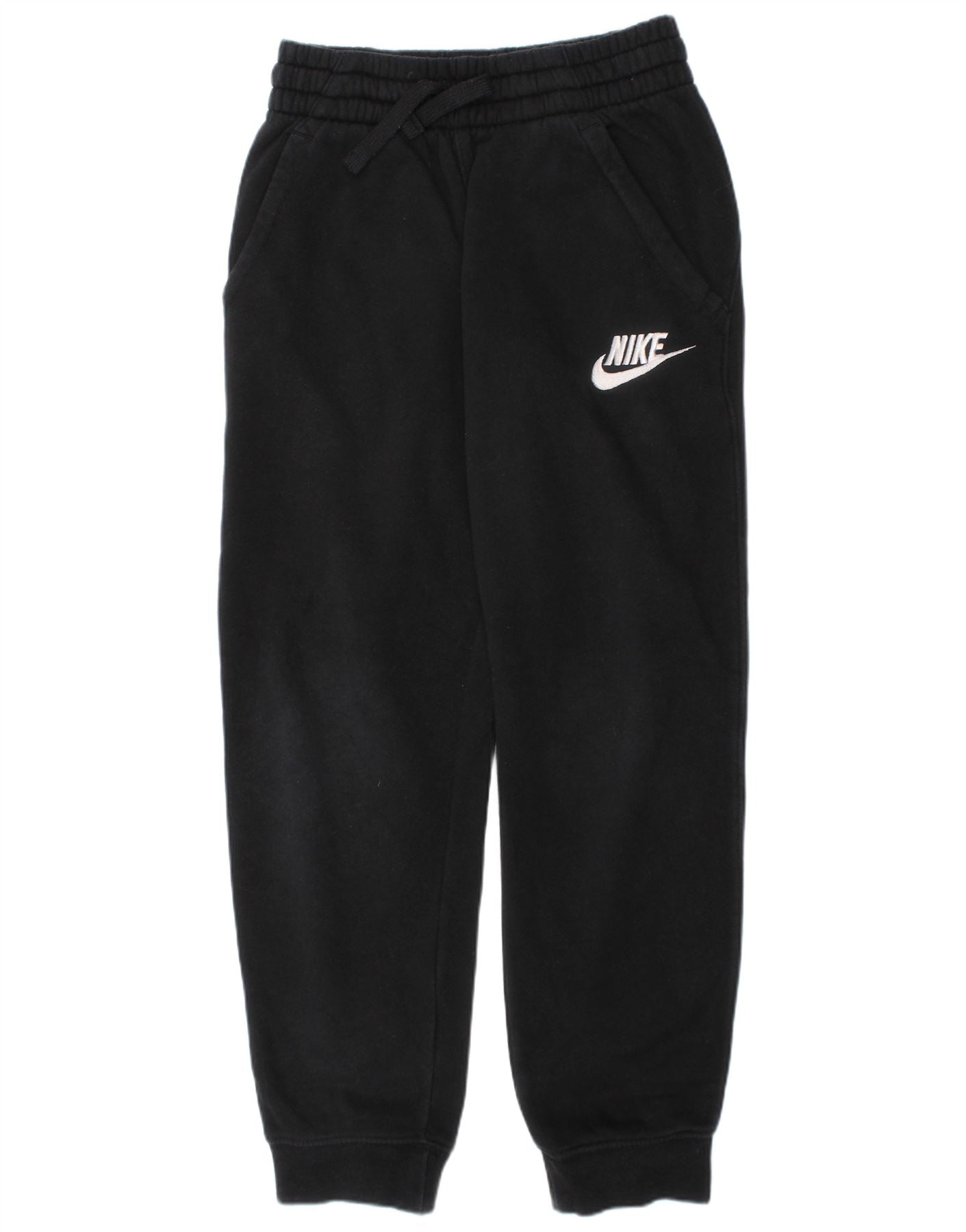 NIKE Girls Graphic Tracksuit Trousers Joggers 8-9 Years Small Black Cotton