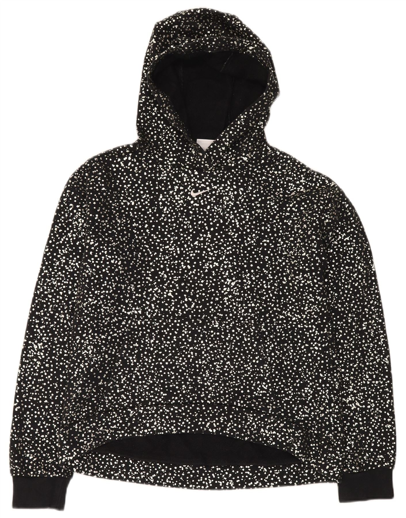 NIKE Girls Hoodie Jumper 13-14 Years XL Black Spotted Cotton