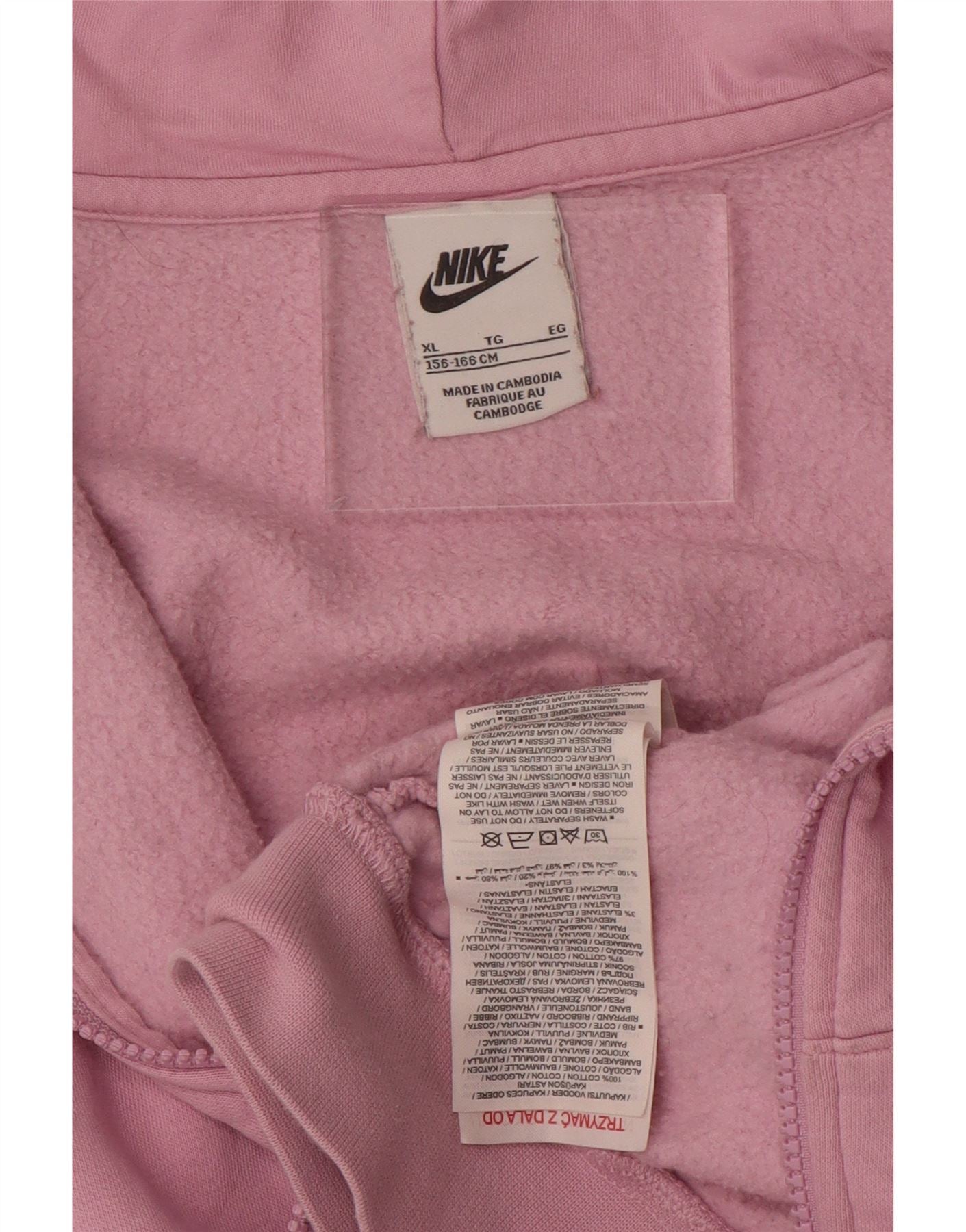 NIKE Girls Oversized Crop Graphic Zip Hoodie Sweater 13-14 Years XL Pink