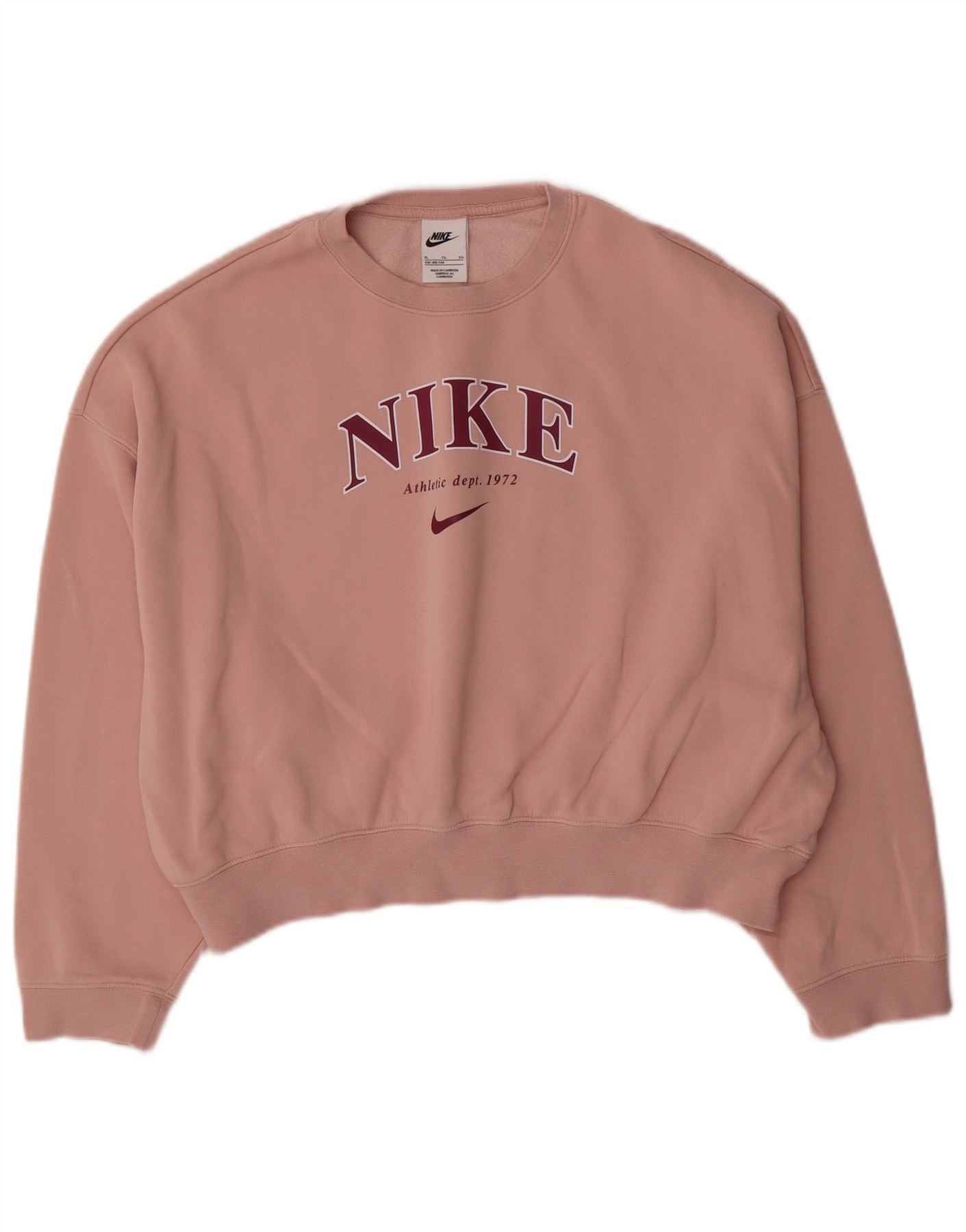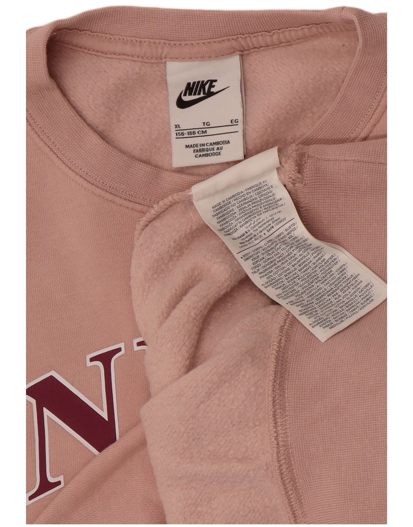 NIKE Girls Oversized Graphic Sweatshirt Jumper 13-14 Years XL Pink Cotton