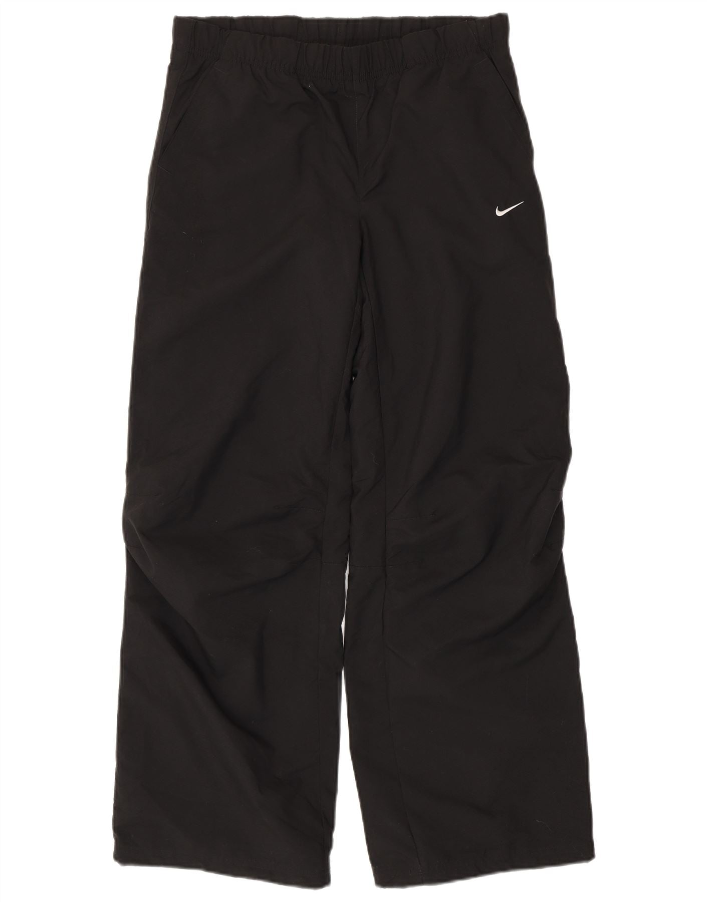 - AI Description: This Nike girls windbreaker trousers are crafted from black woven polyester for a lightweight feel. They feature a comfortable pull on elastic waist and a relaxed fit for ease of movement. The trousers are fully lined for added comfort and warmth. Practical pockets offer convenient storage. A subtle Nike logo provides a signature sports accent.