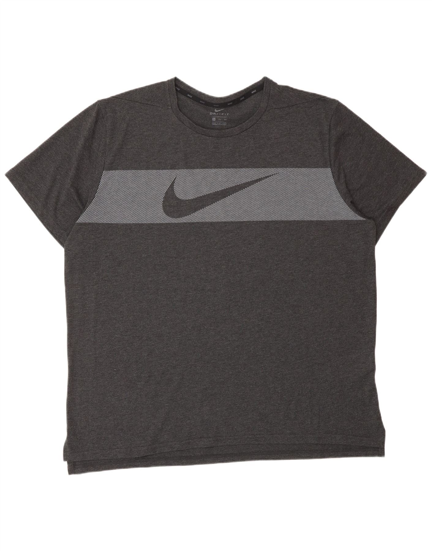 NIKE Mens Dri Fit Graphic T-Shirt Top 2XL Grey Pinstripe Cotton