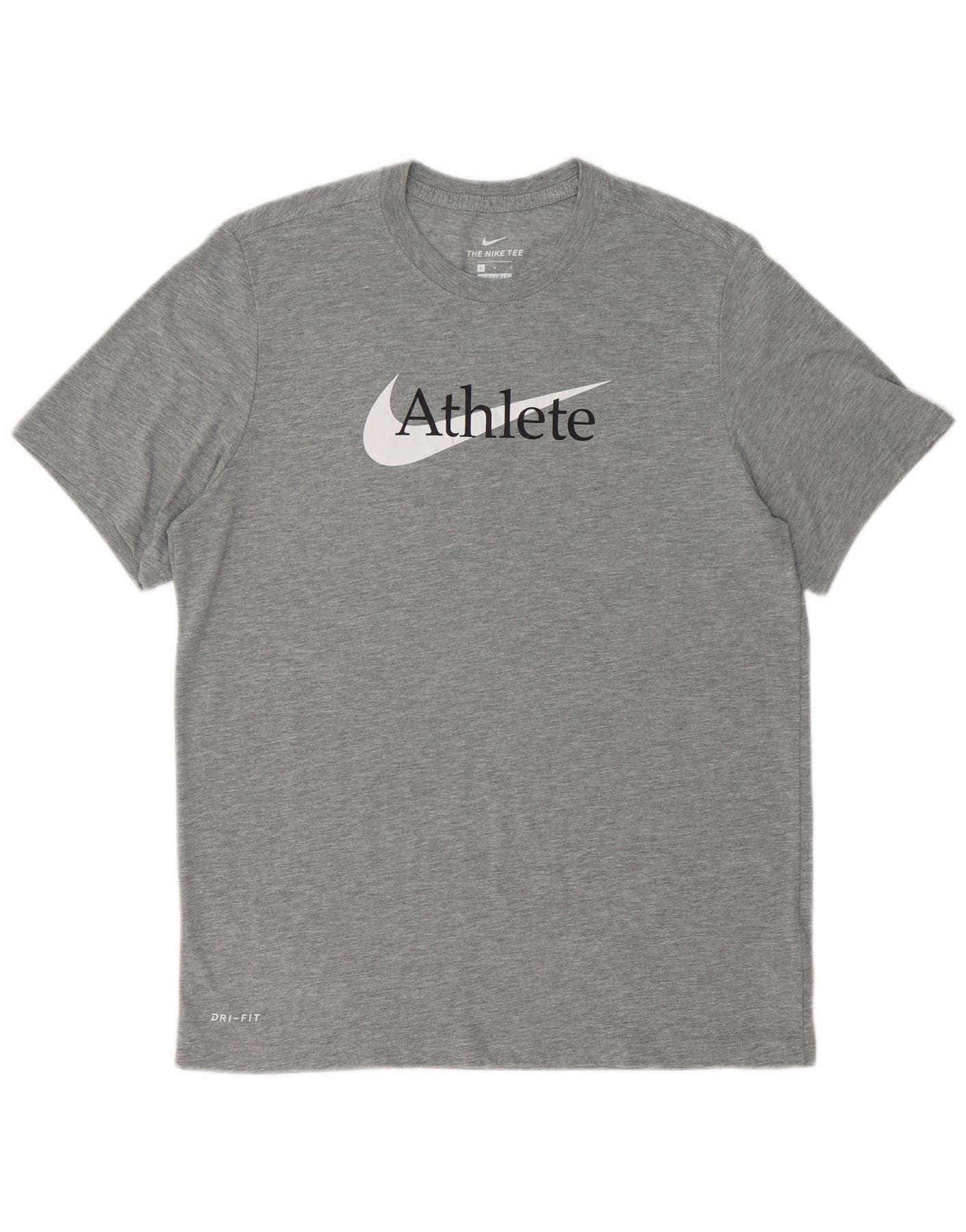 NIKE Mens Dri Fit Graphic T-Shirt Top Large Grey Polyester