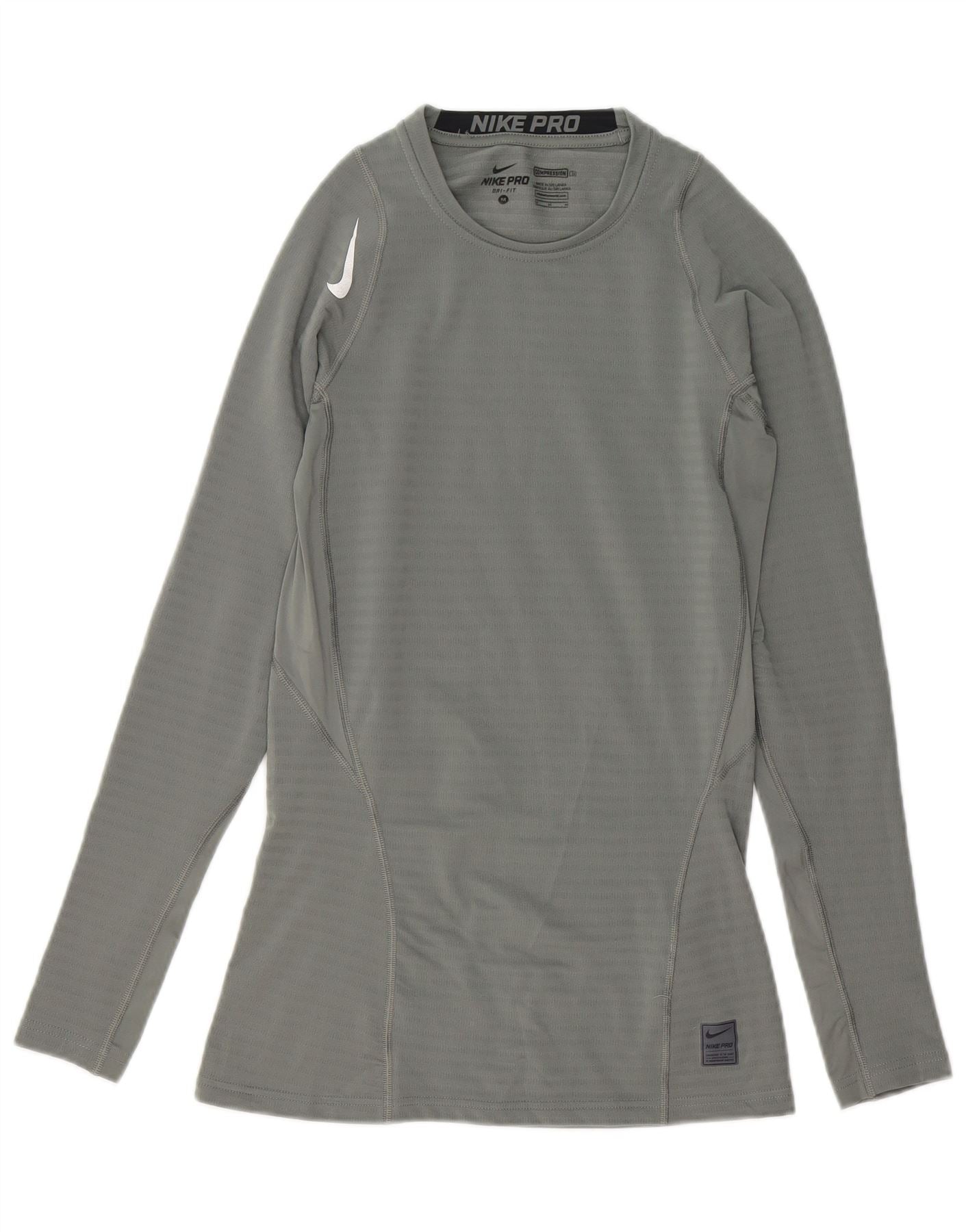 Nike Mens Dri Fit Graphic Top Long Sleeve UK 14 Medium Grey Polyester