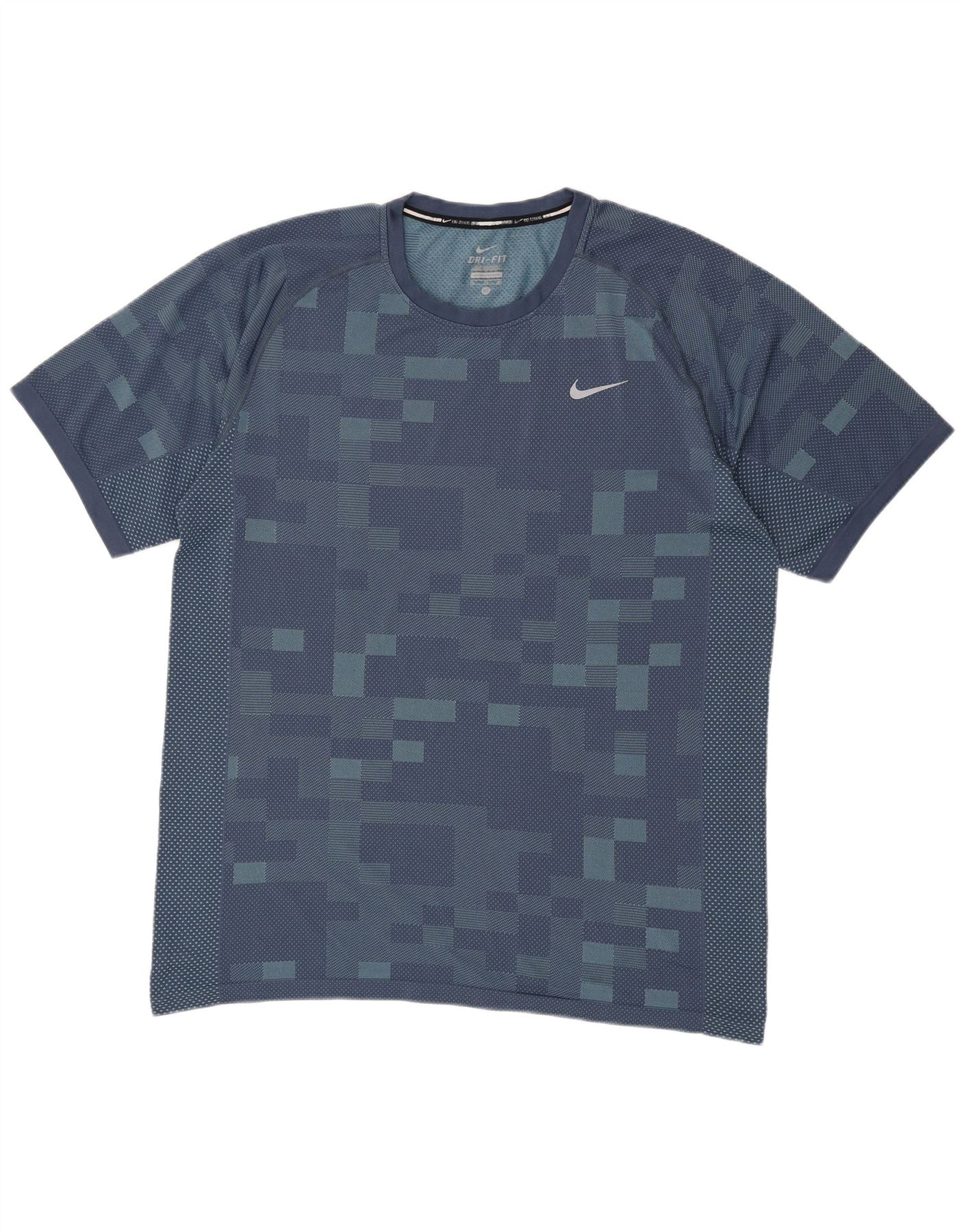 NIKE Mens Dri Fit T-Shirt Top XL Navy Blue Geometric