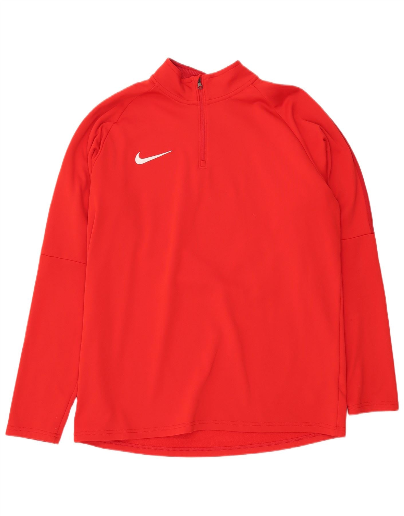 NIKE Mens Dri Fit Zip Neck Pullover Tracksuit Top Large Red Polyester