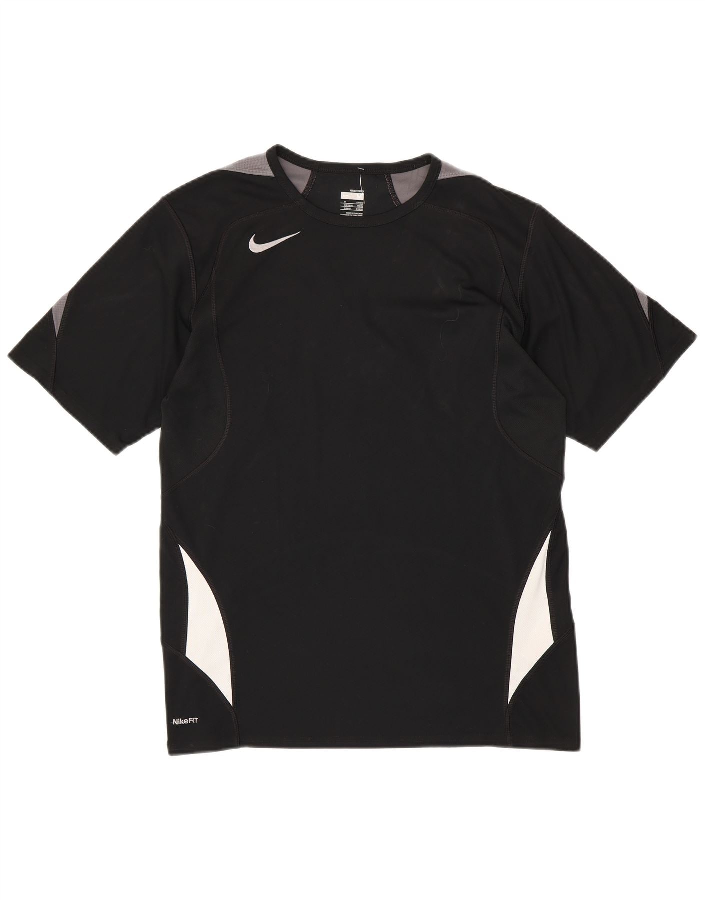 NIKE Mens Fit Dry T-Shirt Top UK 39/41 Medium Black Colourblock Polyester