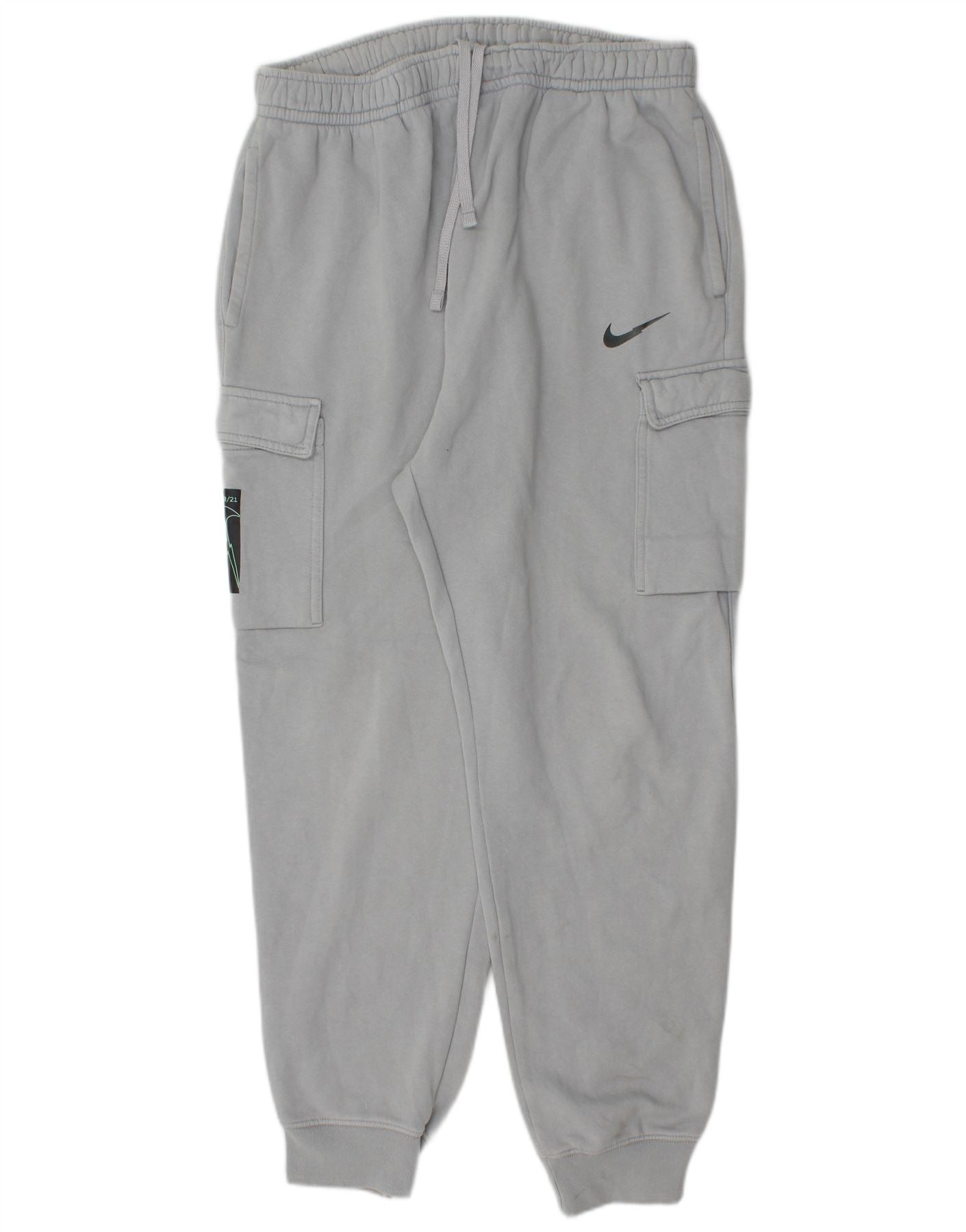 NIKE Mens Graphic Cargo Tracksuit Trousers Joggers Large Grey Cotton