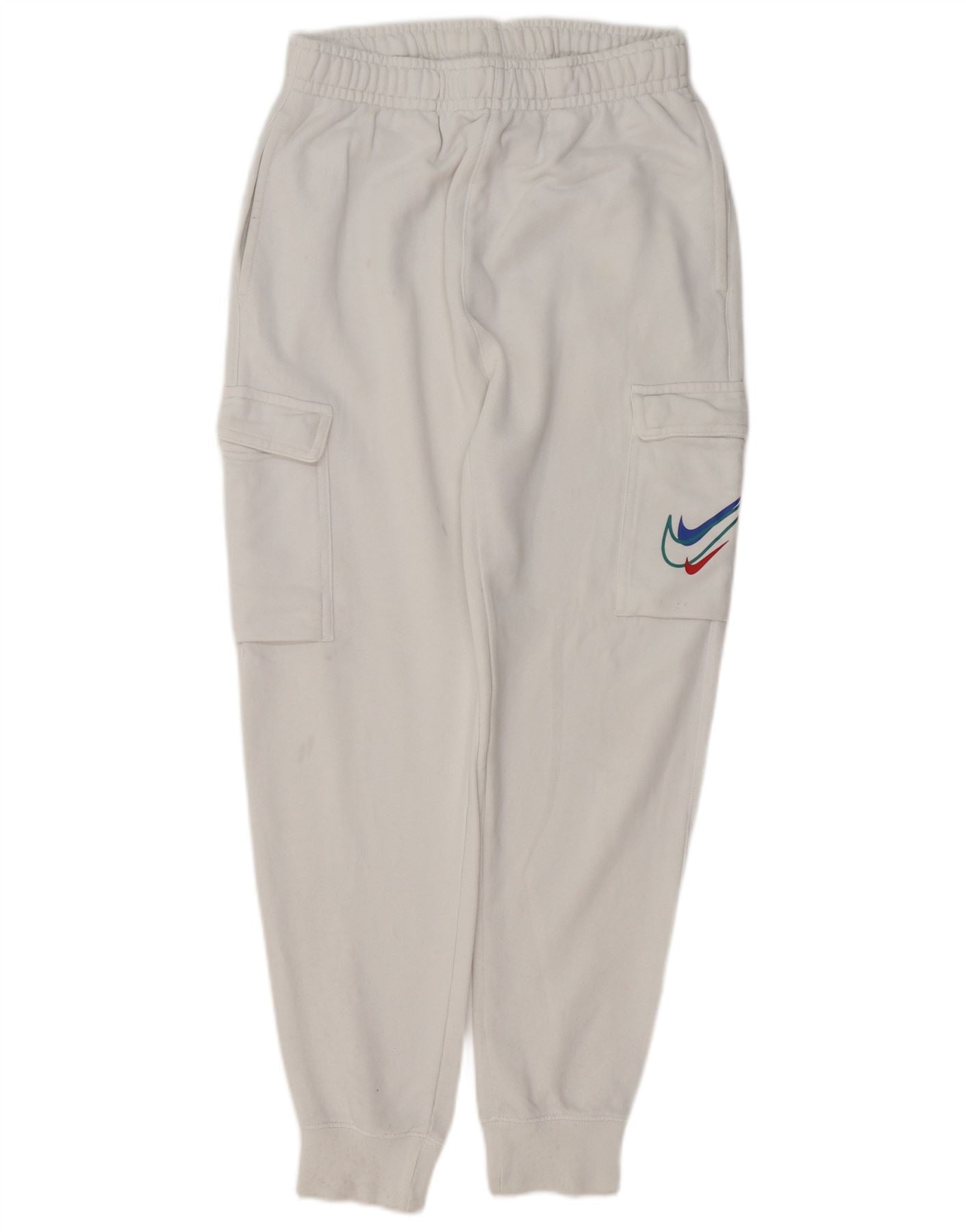 NIKE Mens Graphic Cargo Tracksuit Trousers Joggers Small White Cotton