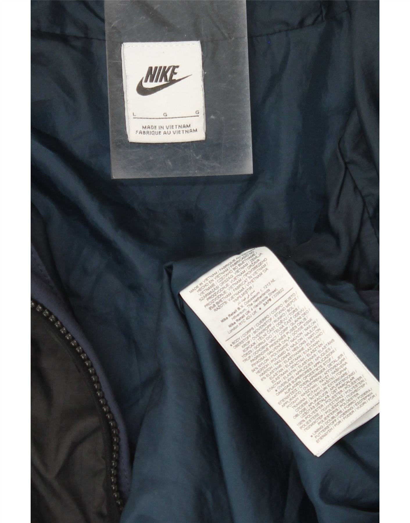 NIKE Mens Graphic Hooded Tracksuit Top Jacket Large Navy Blue Colourblock