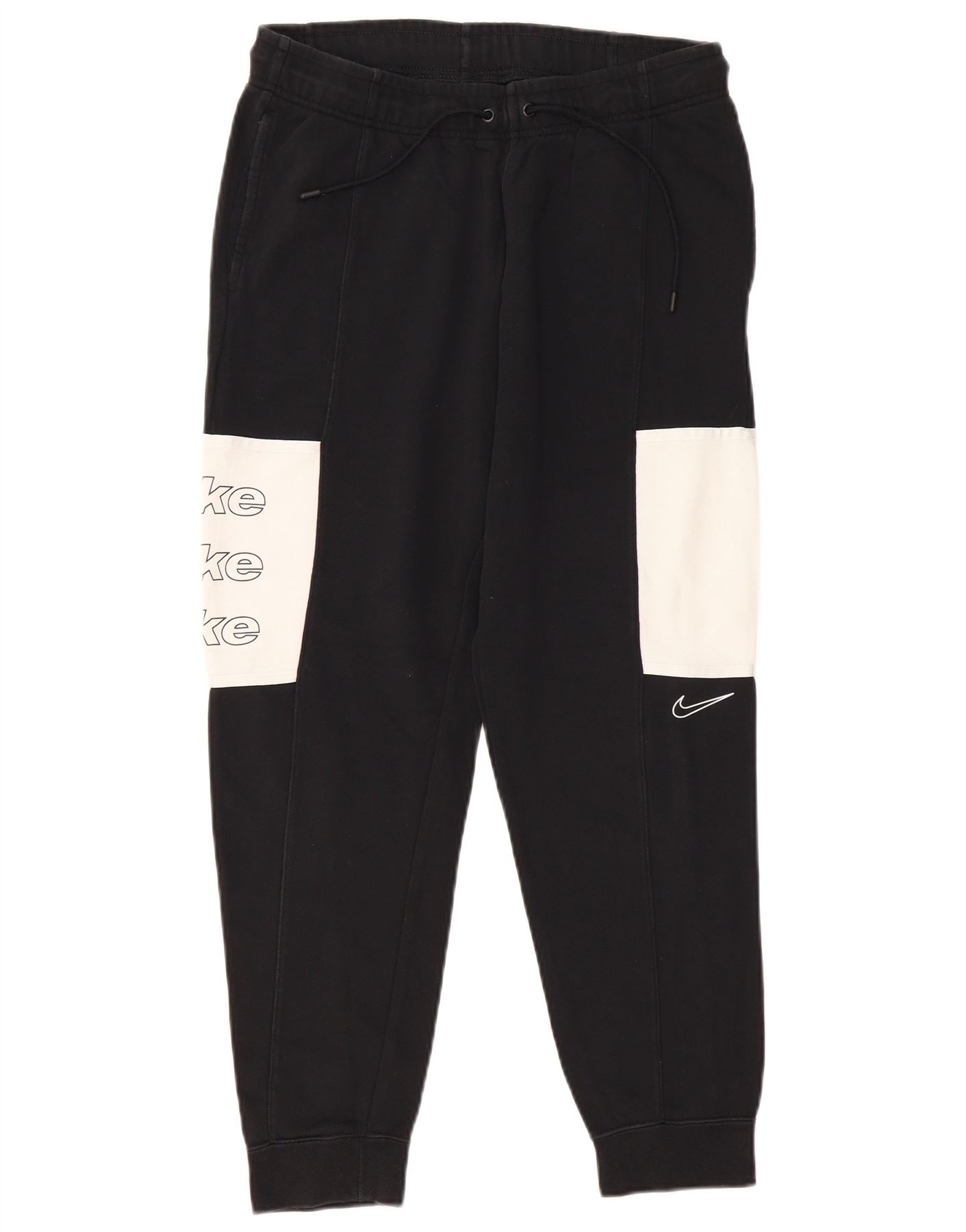 NIKE Mens Graphic Tracksuit Trousers Joggers Medium Black Colourblock