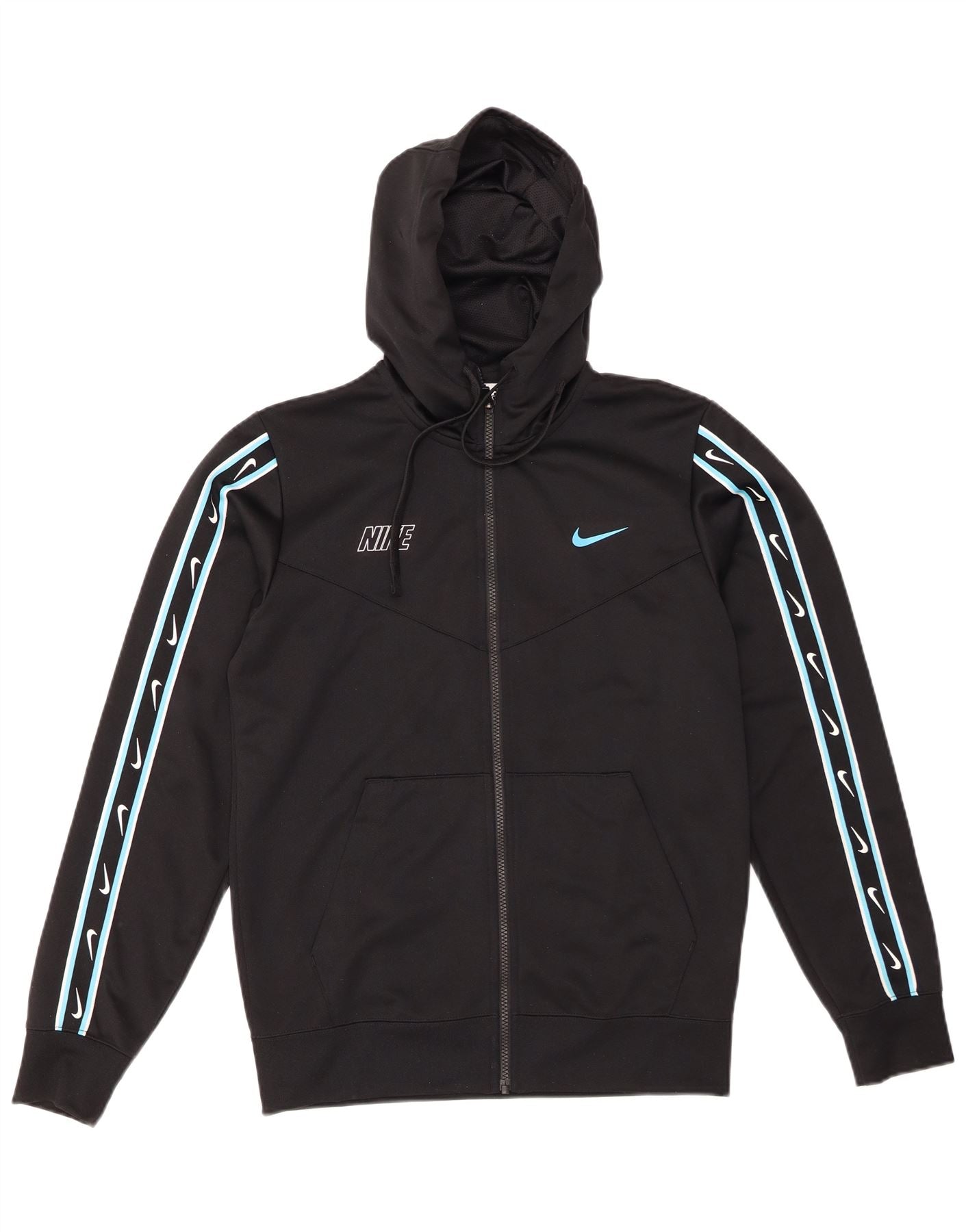 NIKE Mens Graphic Zip Hoodie Sweater Small Black Polyester