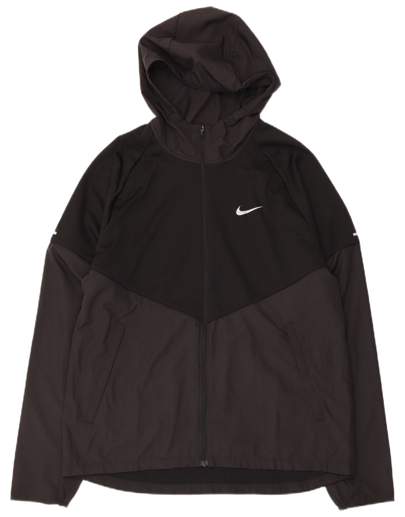 NIKE Mens Therma-Fit Hooded Tracksuit Top Jacket Medium Black Colourblock