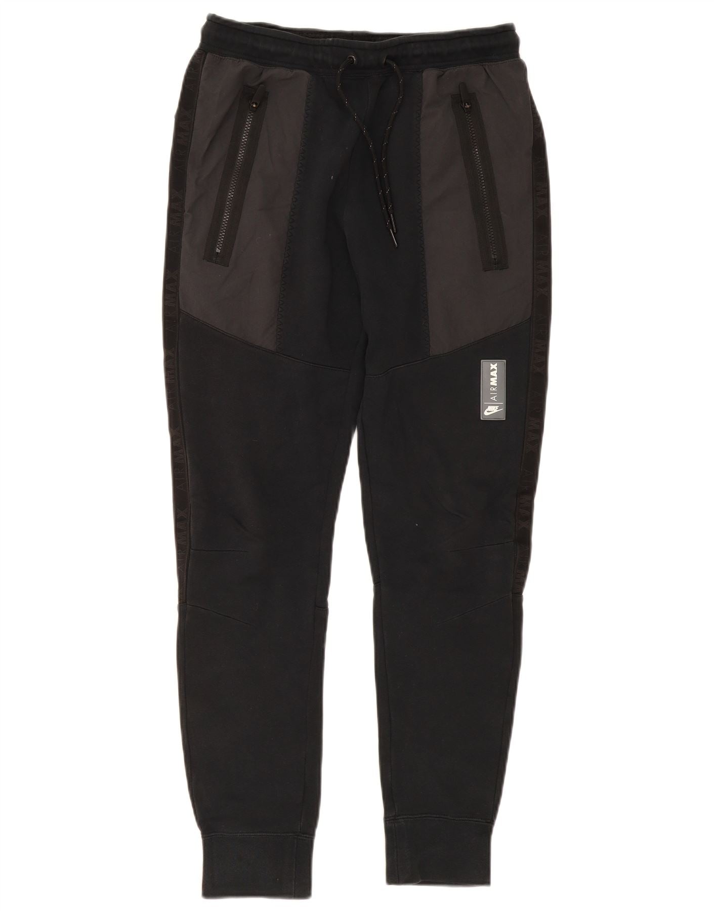 NIKE Mens Tracksuit Trousers Joggers Small Black Colourblock Cotton