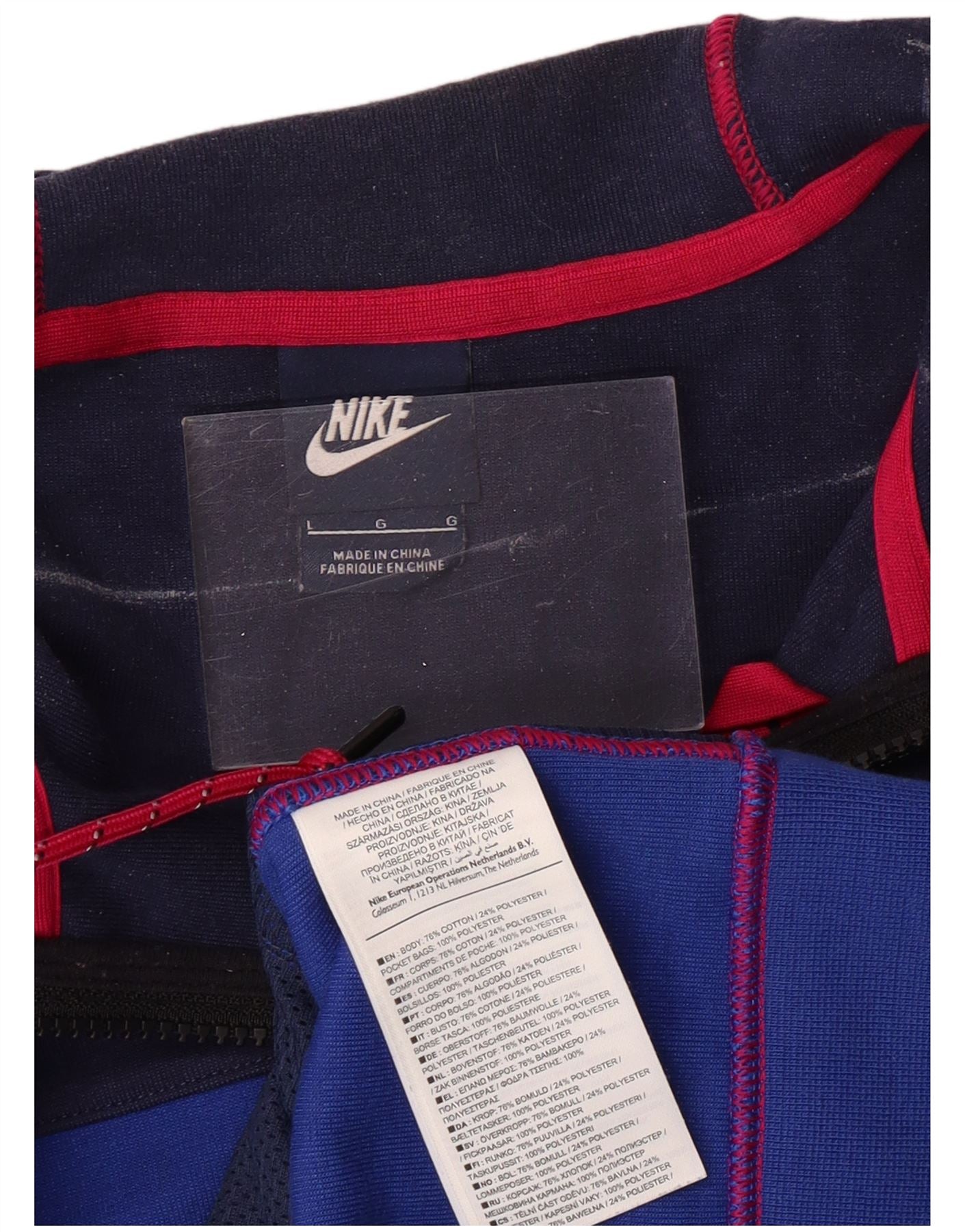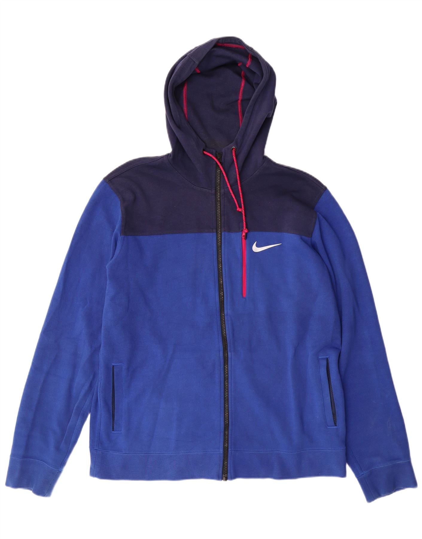 NIKE Mens Zip Hoodie Sweater Large Blue Colourblock Cotton