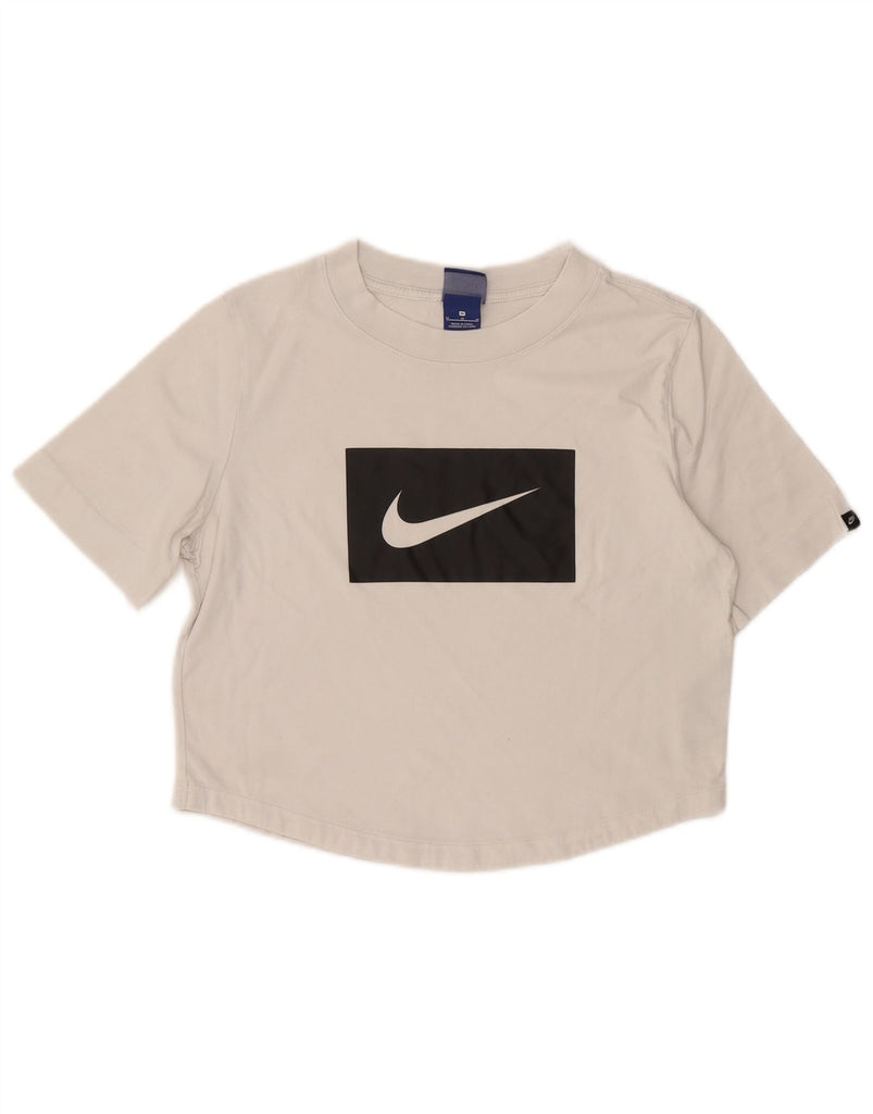 NIKE Womens Crop Graphic T-Shirt Top UK 12 Medium White Cotton