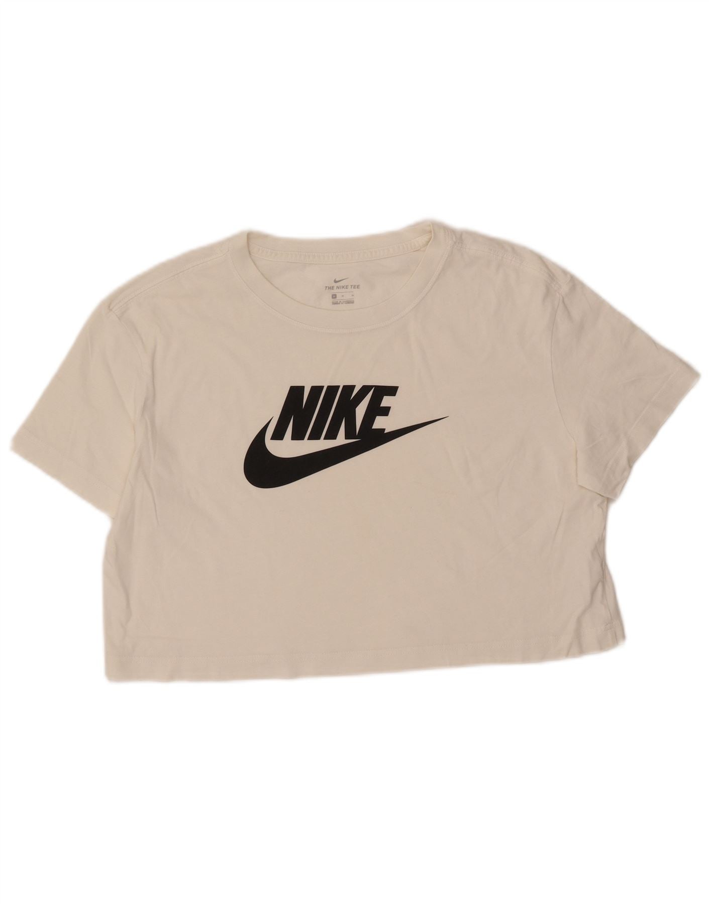 NIKE Womens Crop Graphic T-Shirt Top UK 14 Medium White Cotton