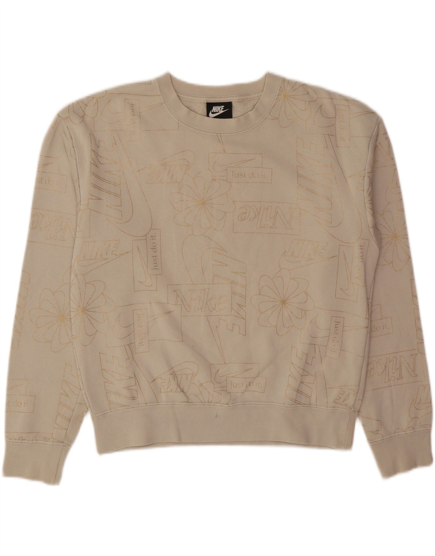 NIKE Womens Crop Oversized Graphic Sweatshirt Jumper UK 6 XS Beige Floral