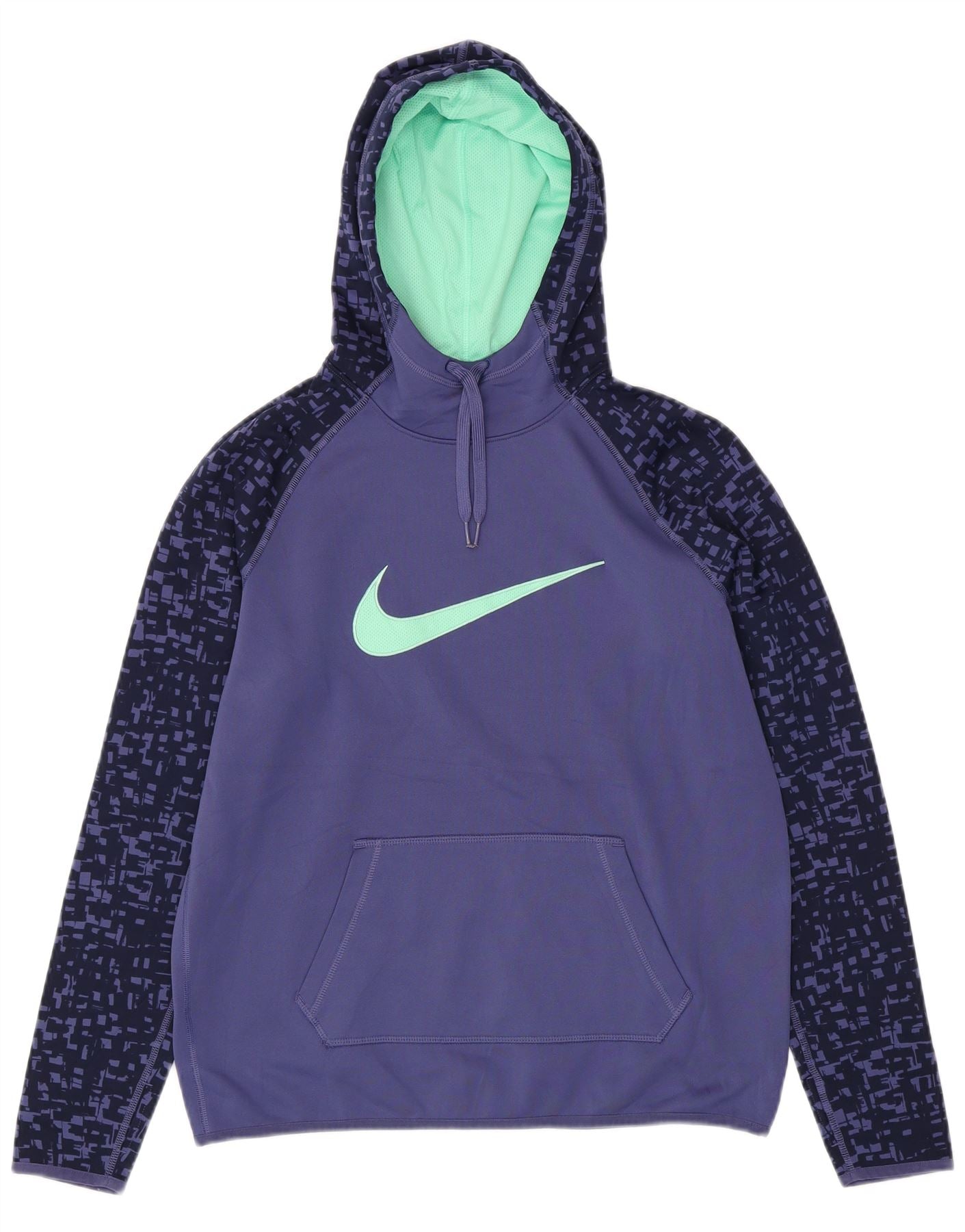 NIKE Womens Dri Fit Graphic Hoodie Jumper UK 14 Medium Purple Geometric