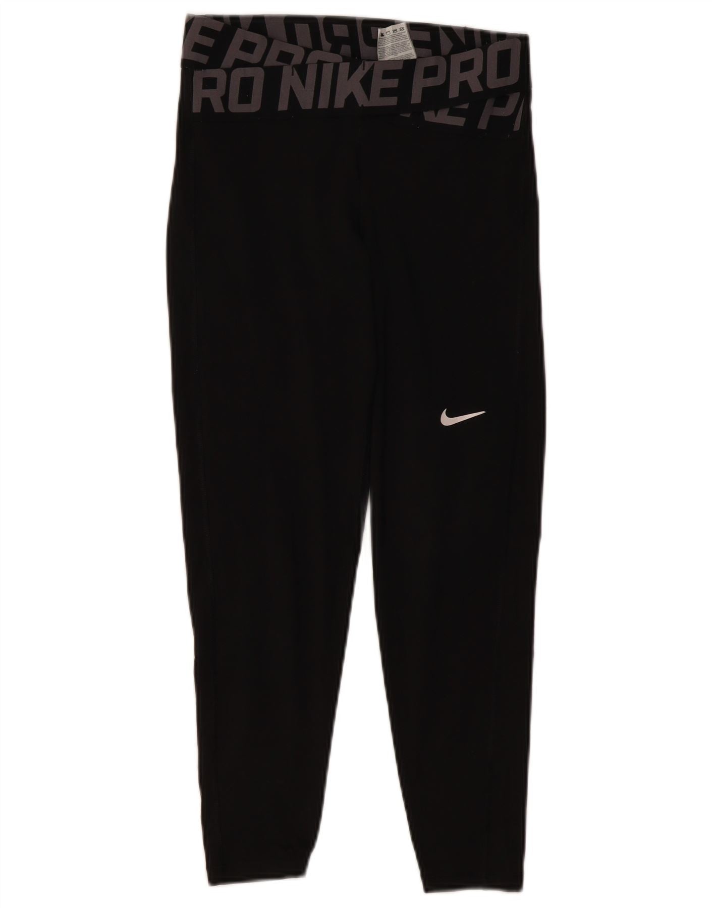 NIKE Womens Dri Fit Graphic Leggings UK 10 Small Black Polyester