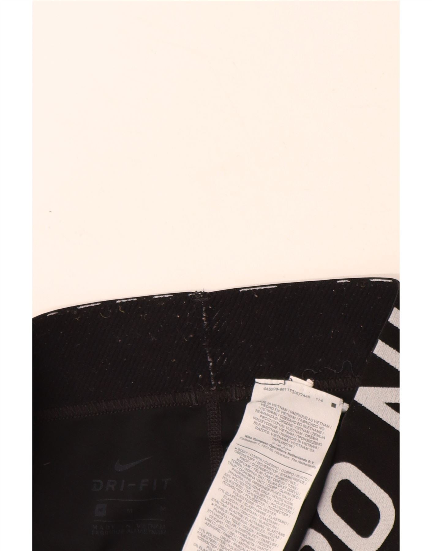 NIKE Womens Dri Fit Graphic Leggings UK 12 Medium Black Polyester