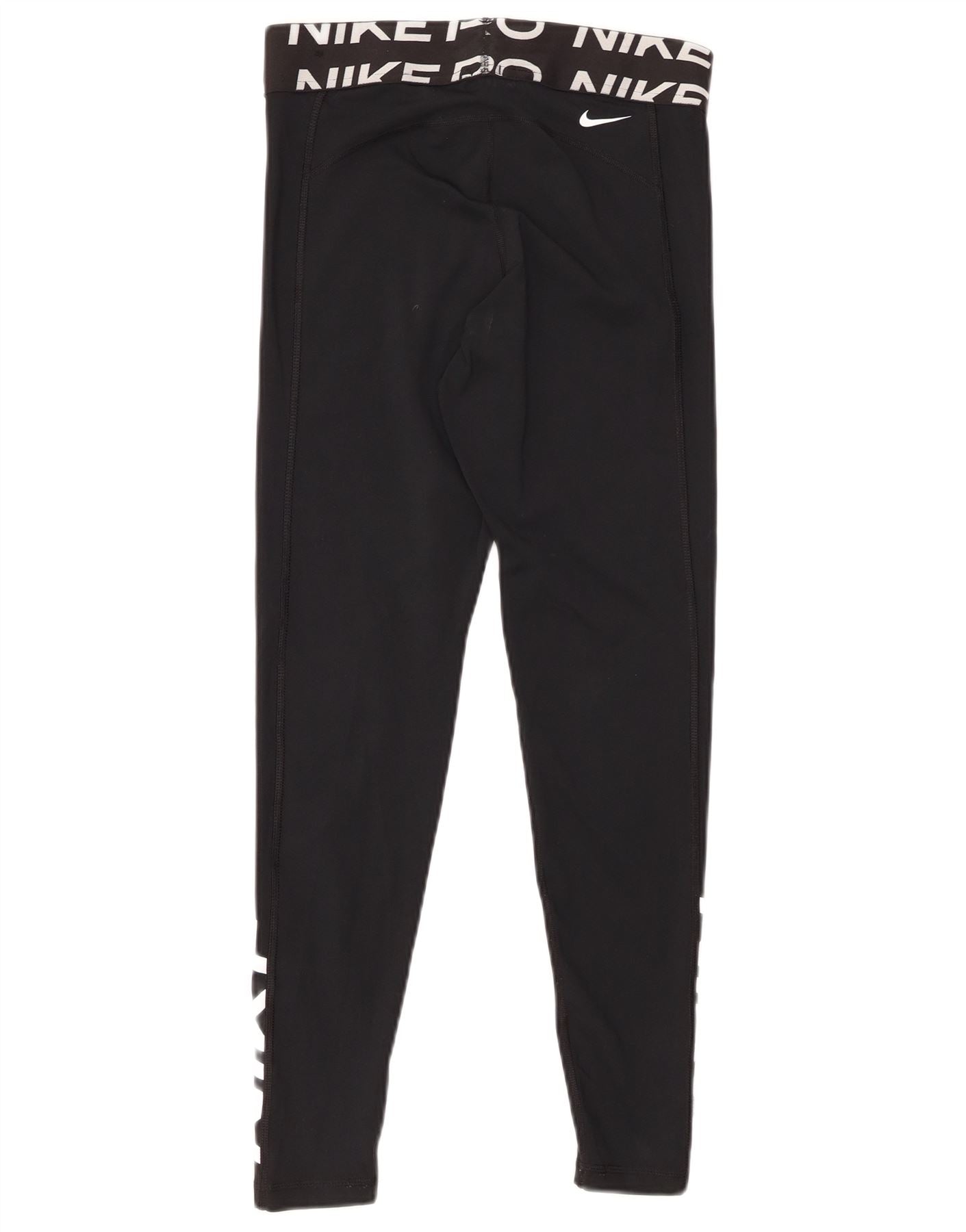 NIKE Womens Dri Fit Graphic Leggings UK 12 Medium Black Polyester