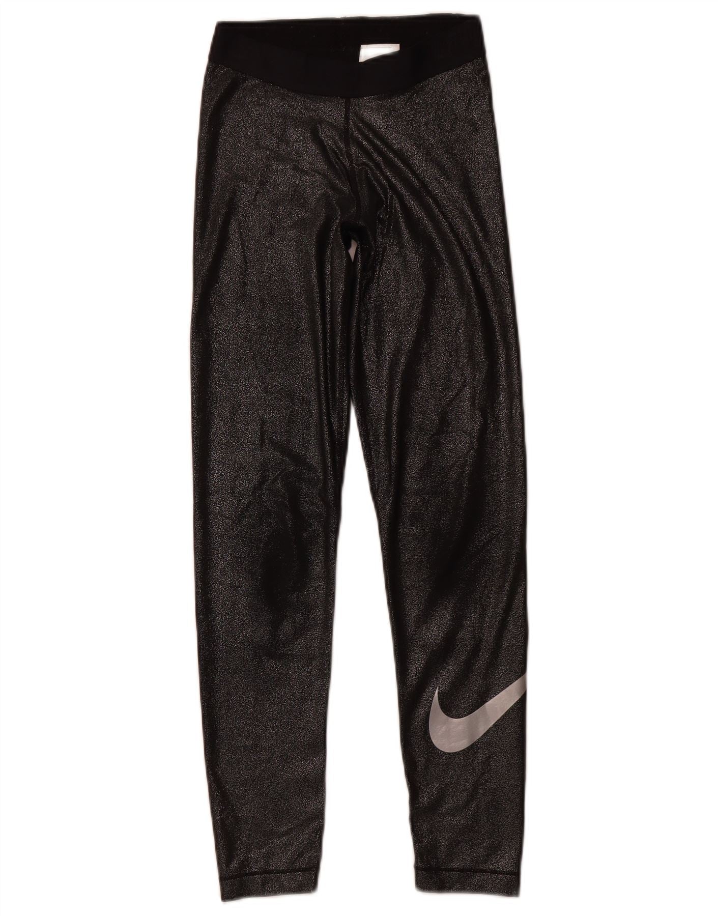 NIKE Womens Dri Fit Graphic Leggings UK 8 Small Black Polyester