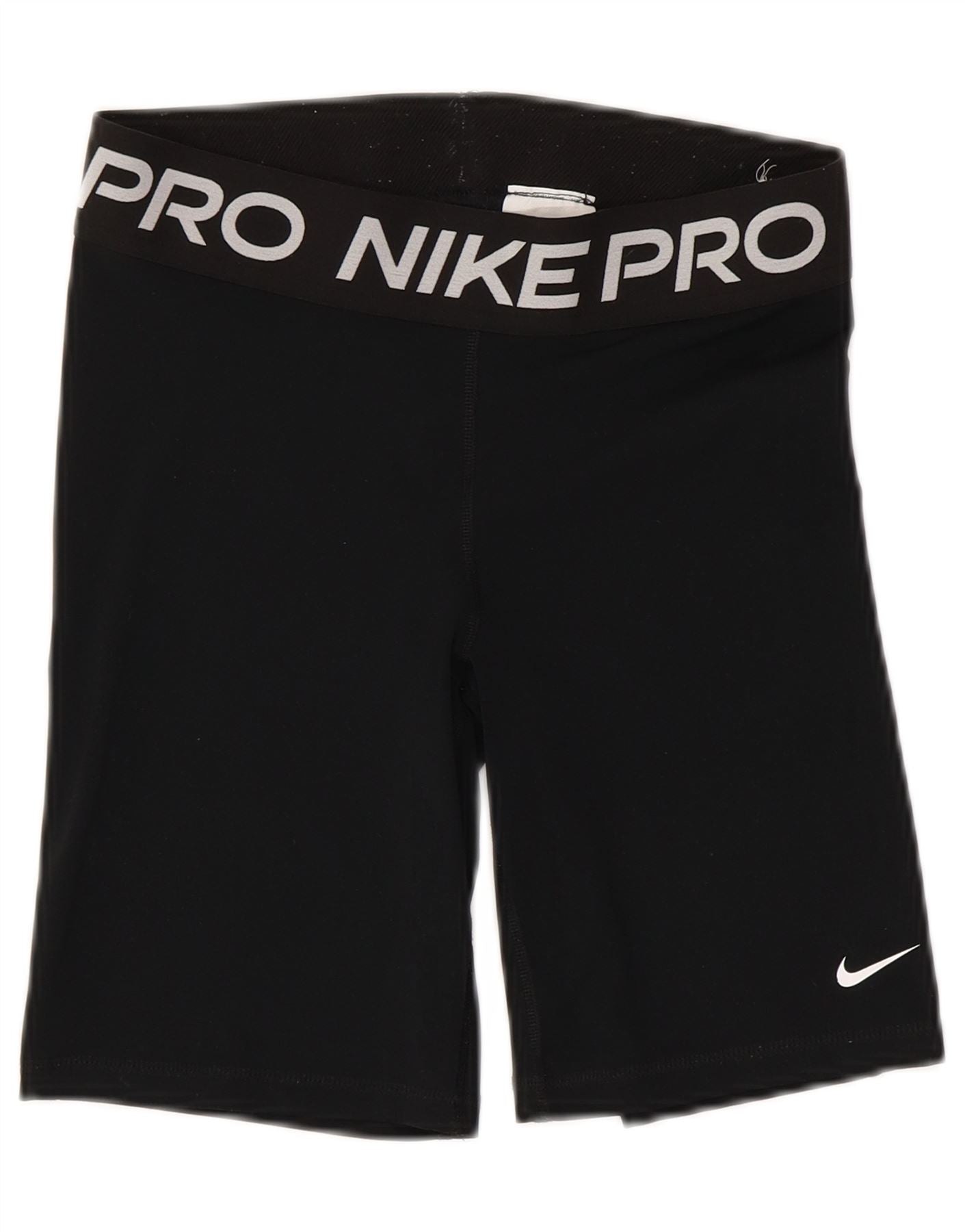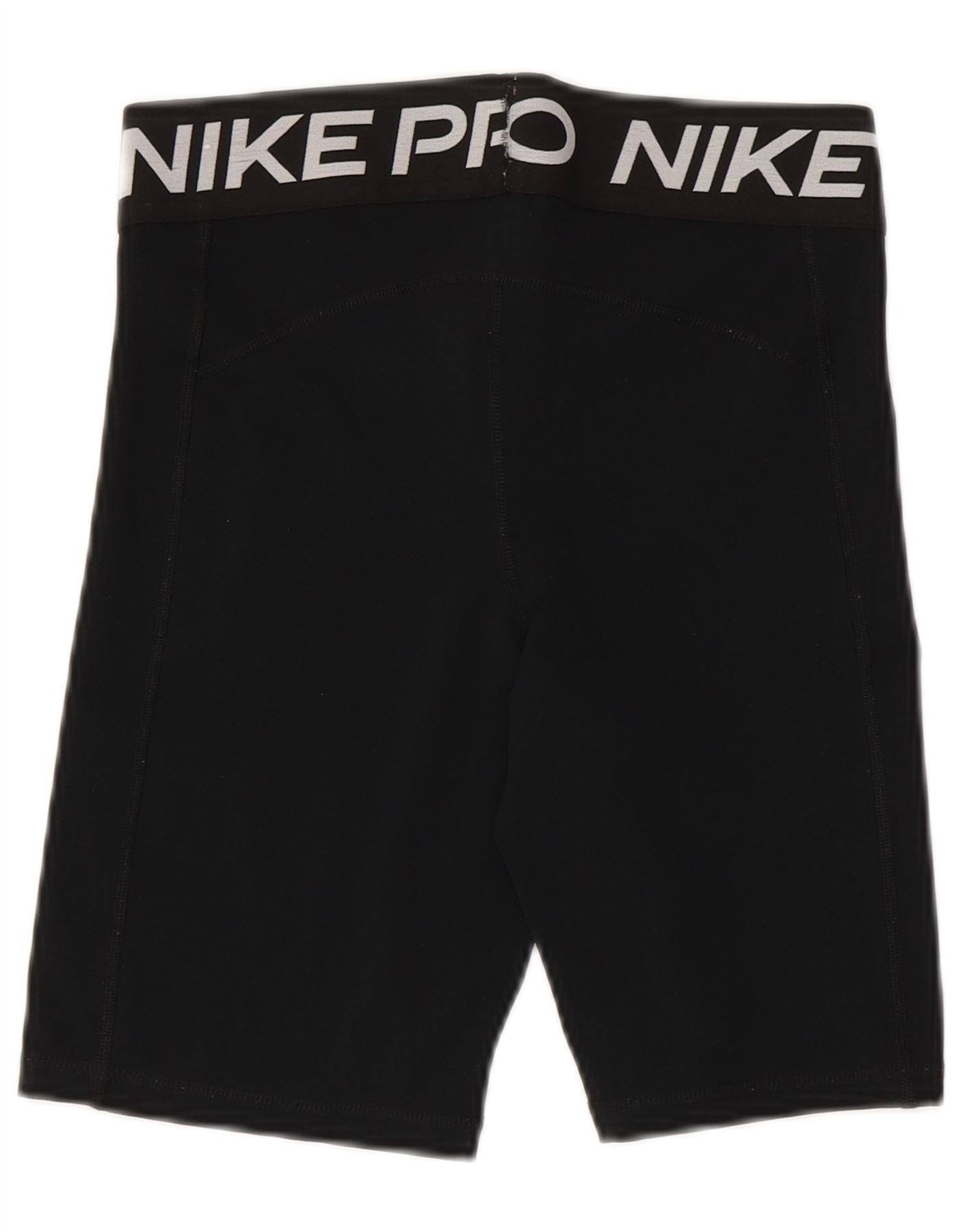 NIKE Womens Dri Fit Graphic Sport Shorts UK 12 Medium Black Polyester