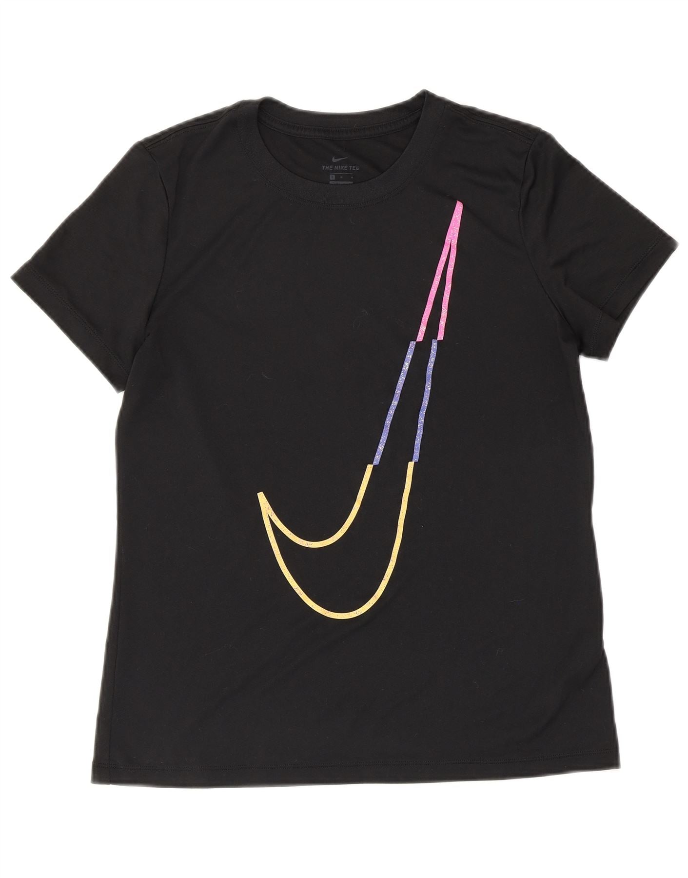 NIKE Womens Dri Fit Graphic T-Shirt Top UK 14 Medium Black Polyester